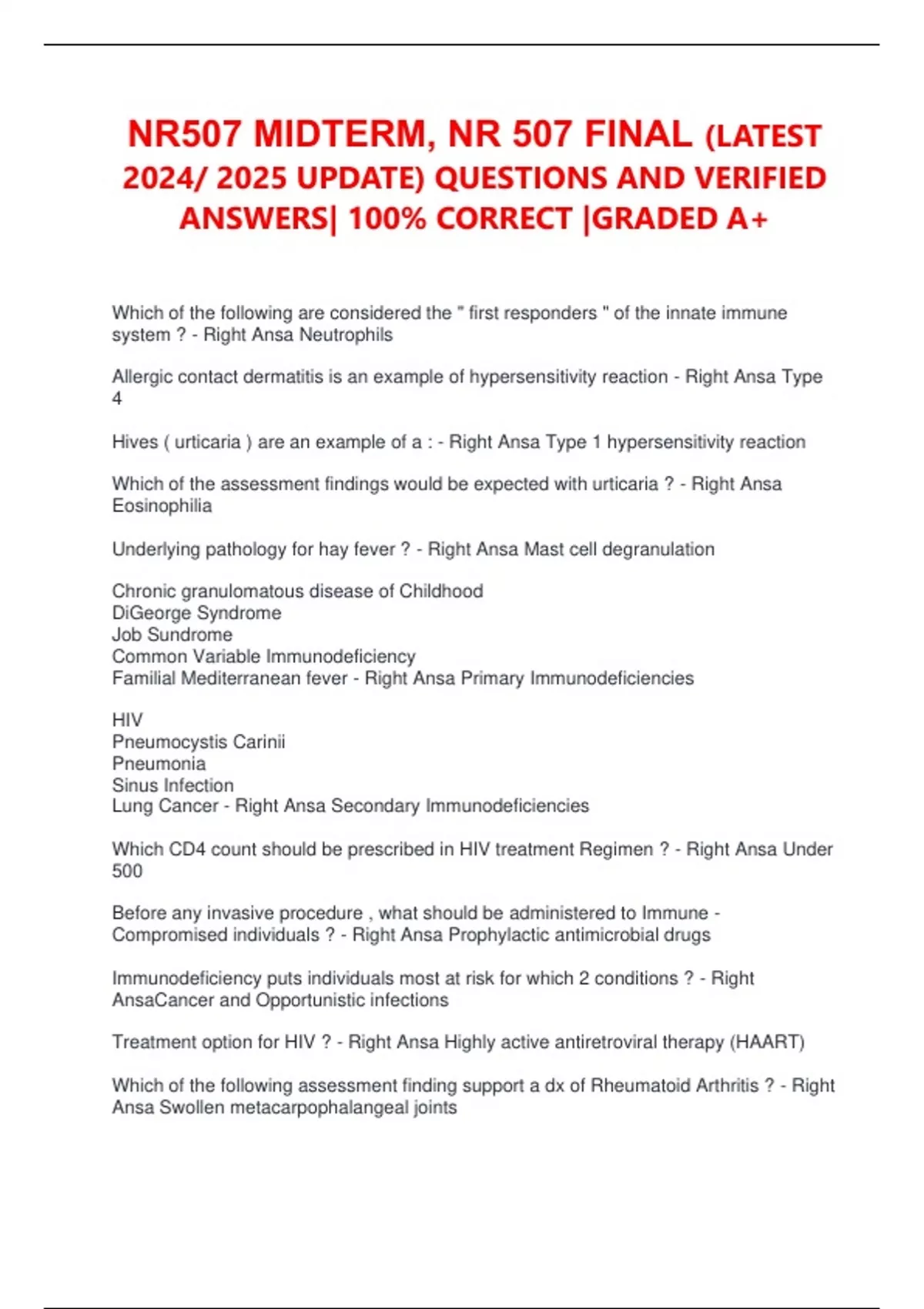 2024/ 2025 UPDATE) QUESTIONS AND VERIFIED