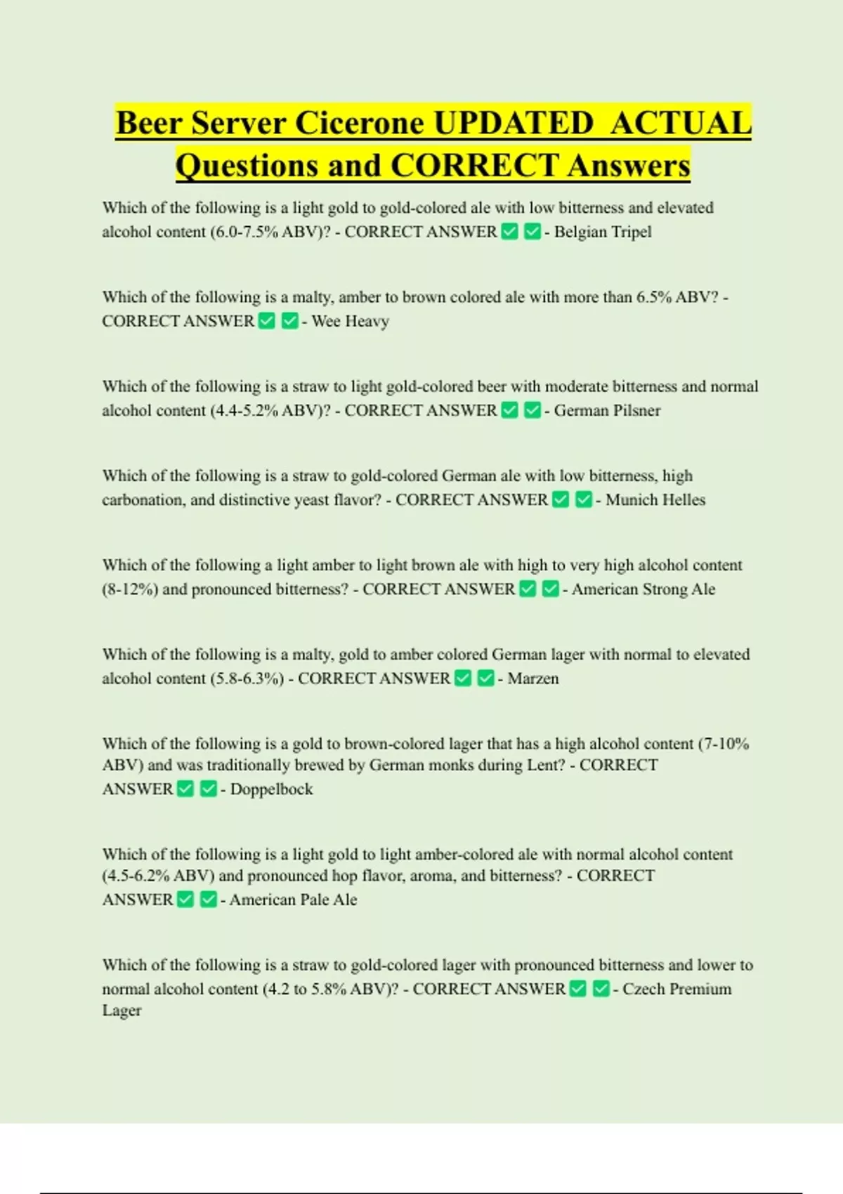 alcohol content (4.4-5.2% ABV)? - CORRECT ANSWER - German Pilsner