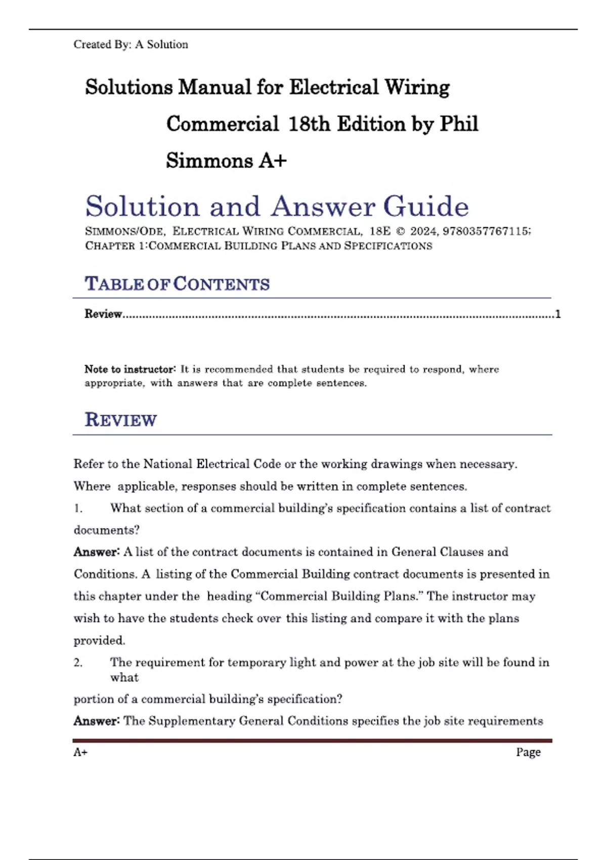 Solution and Answer Guide Electrical Wiring Commercial 18th Edition by Phil Simmons, Ray C. Mullin, Mark Ode