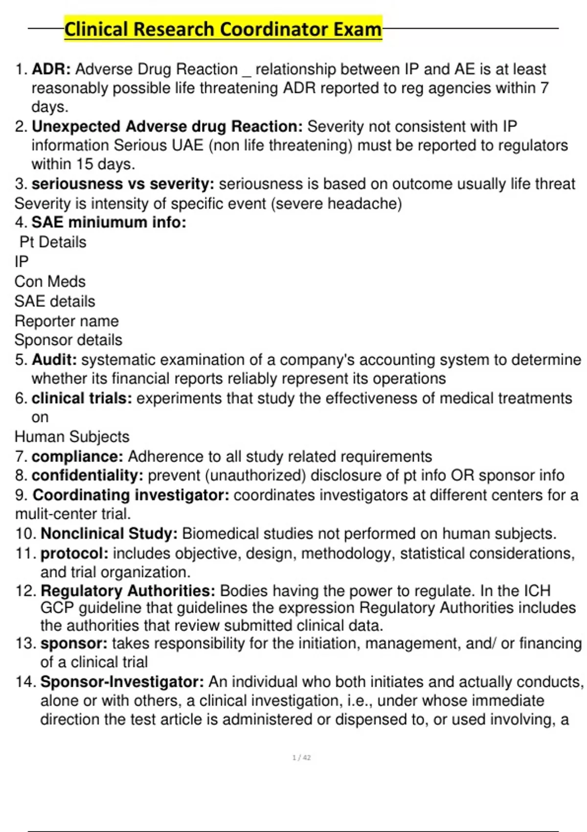 1. ADR: Adverse Drug Reaction _ relationship between IP and AE is at least