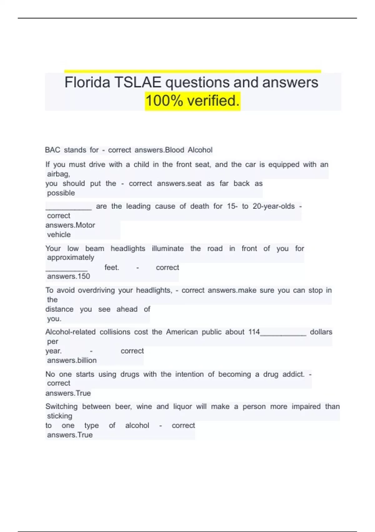 Florida TSLAE questions and answers