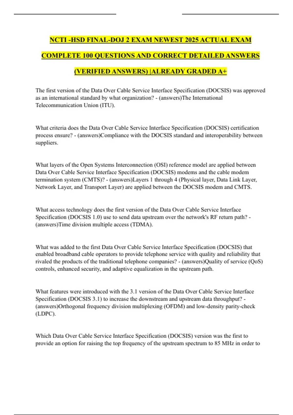 NCTI -HSD FINAL-DOJ 2 EXAM NEWEST 2025 ACTUAL EXAM