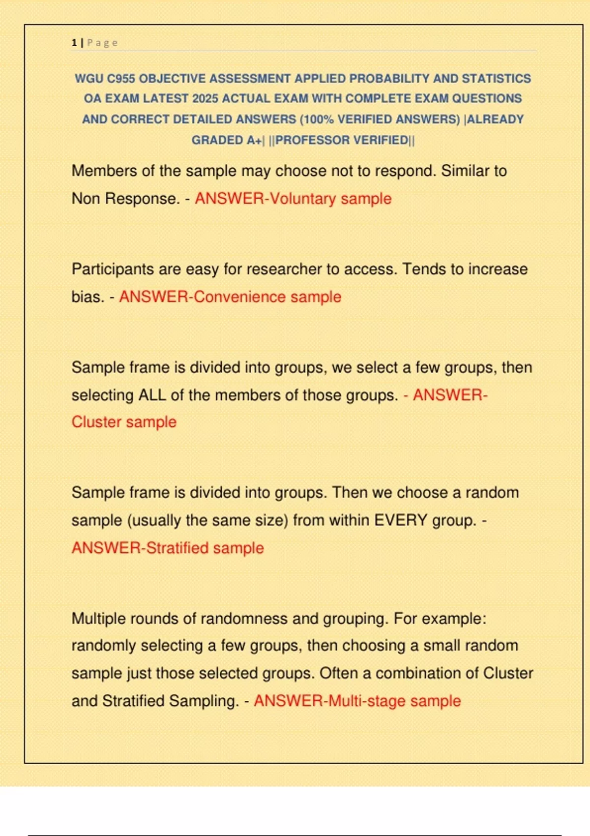 WGU C955 OBJECTIVE ASSESSMENT APPLIED PROBABILITY AND STATISTICS