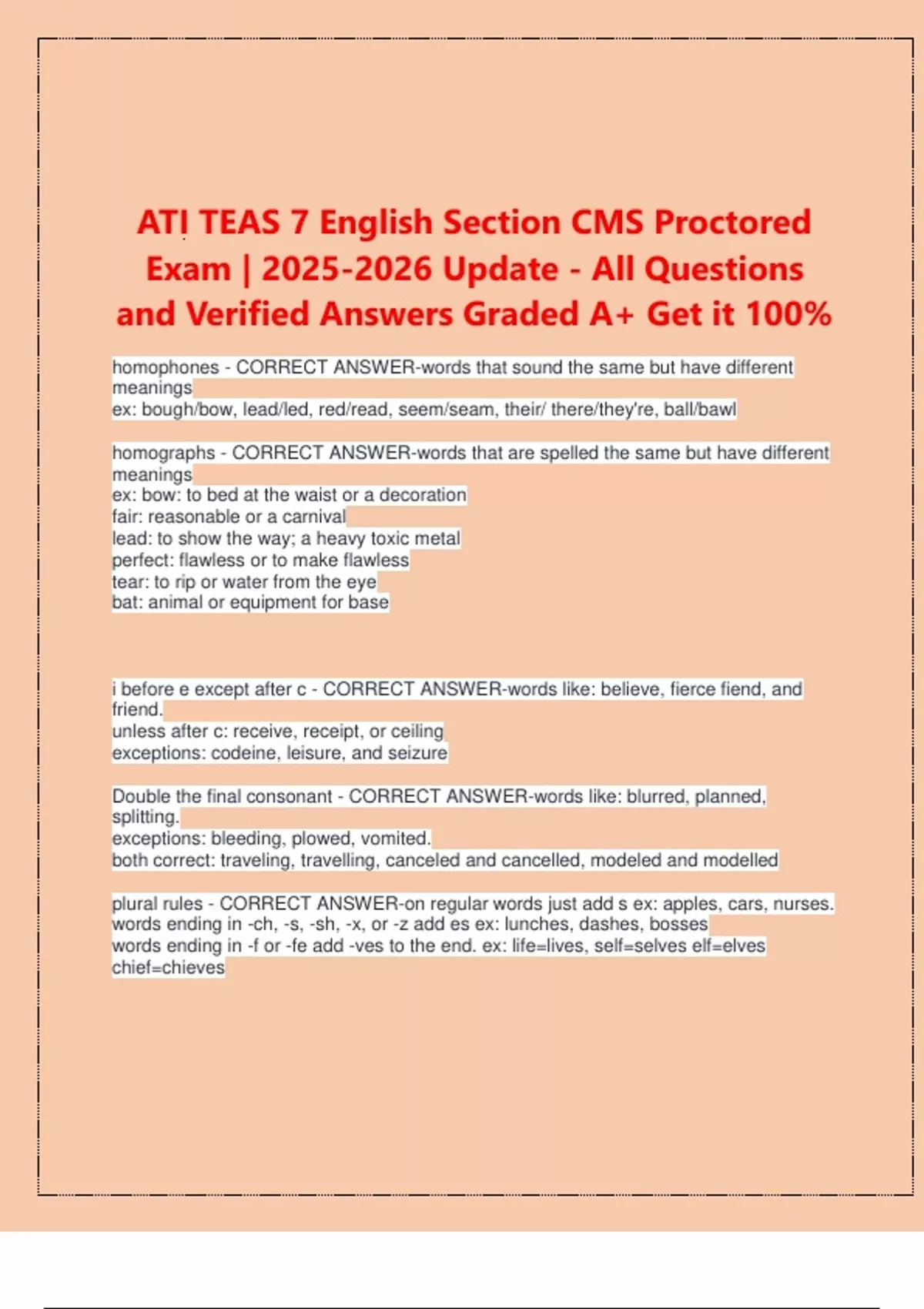 ATI TEAS 7 English Section CMS Proctored