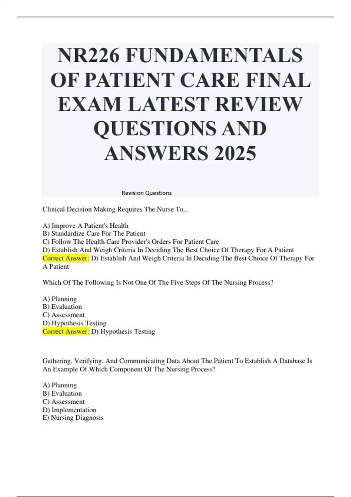 Clinical Decision Making Requires The Nurse To...
