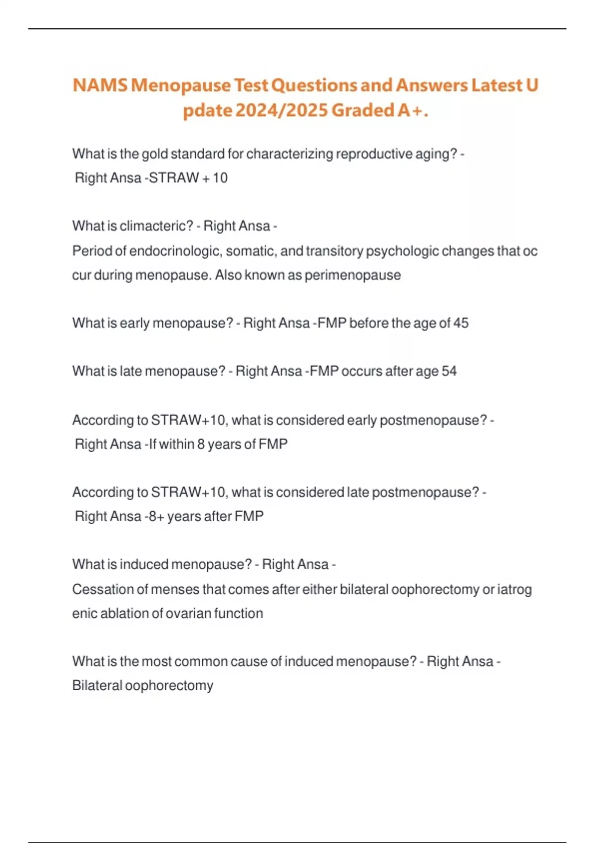 According to STRAW+10, what is considered late postmenopause? -