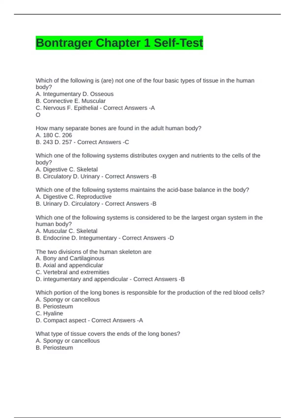 Bontrager Chapter 1 Self-Test
