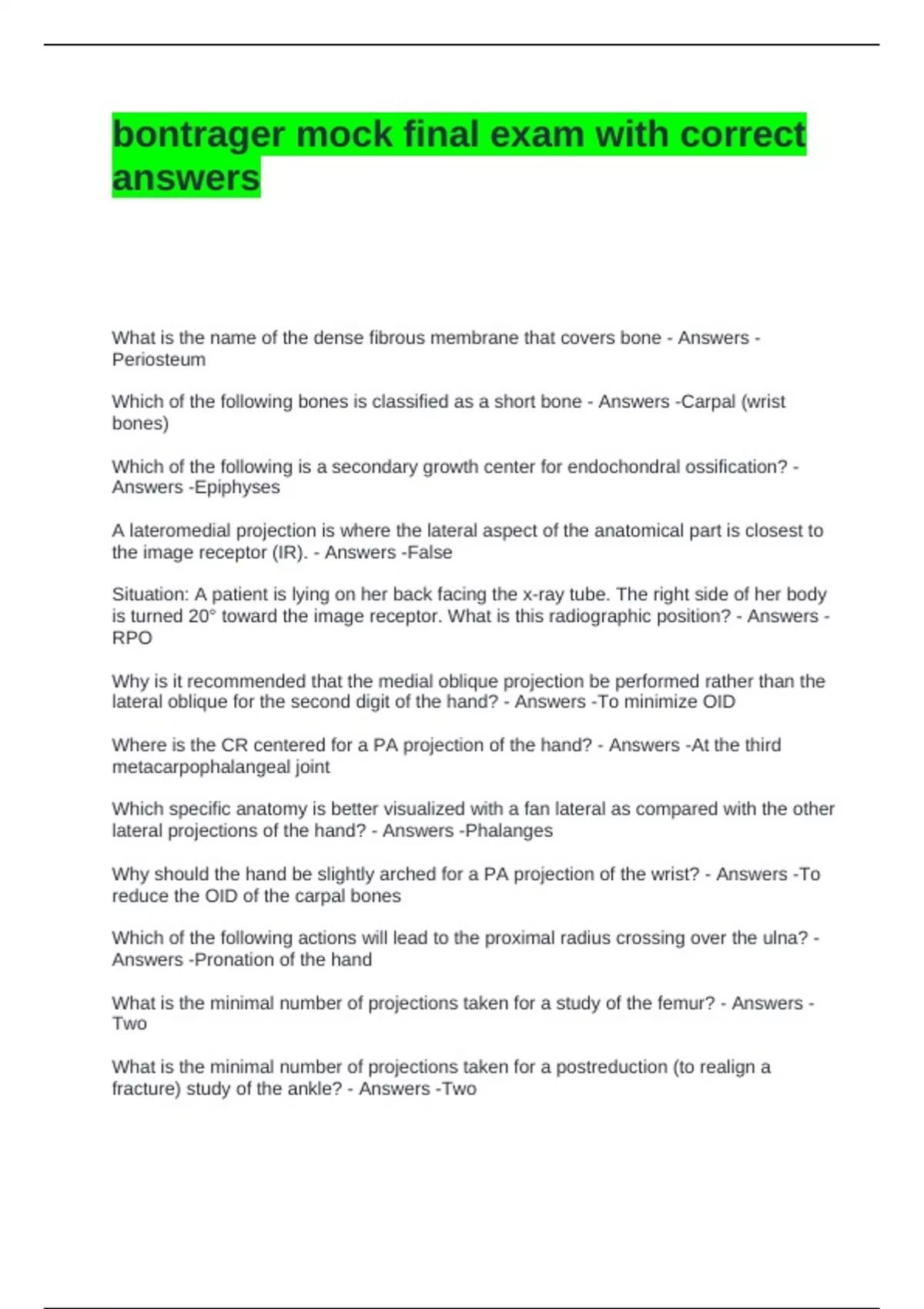 bontrager mock final exam with correct