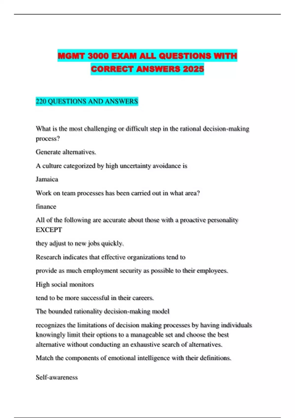 MGMT 3000 EXAM ALL QUESTIONS WITH