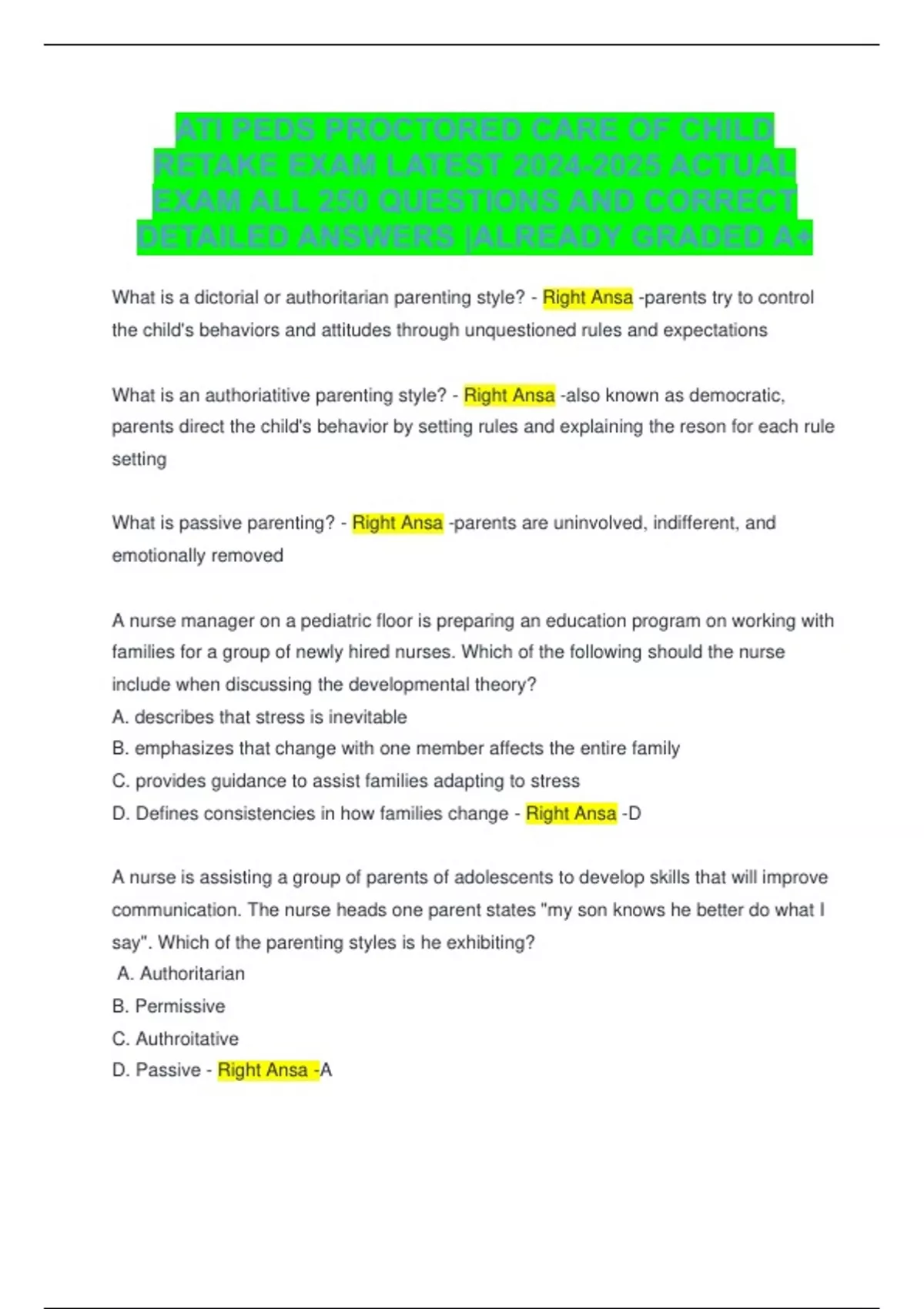 EXAM ALL 250 QUESTIONS AND CORRECT