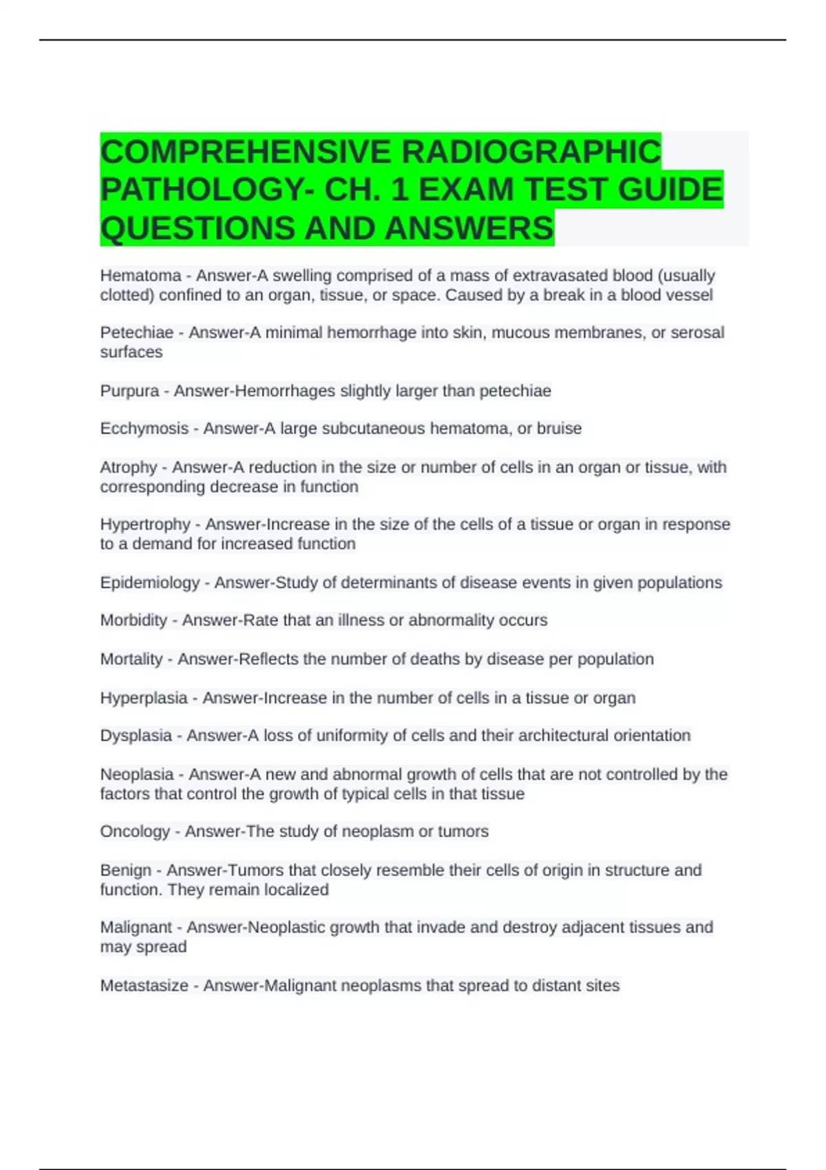 PATHOLOGY- CH. 1 EXAM TEST GUIDE