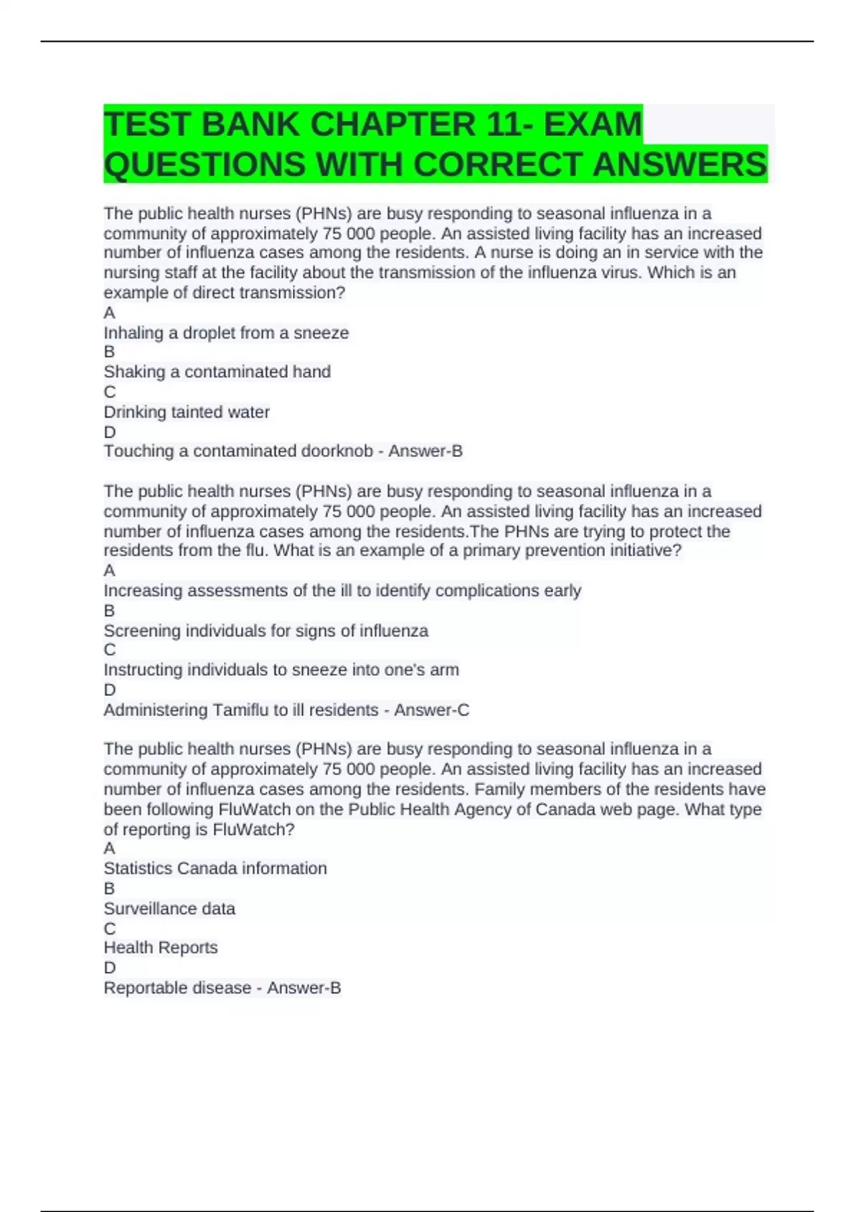 Public Health Agency of Canada (PHAC) - Answer-D