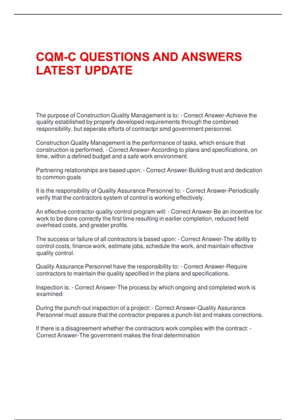 The lpurpose lof lConstruction lQuality lManagement lis lto: l- lCorrect lAnswer-Achieve lthe