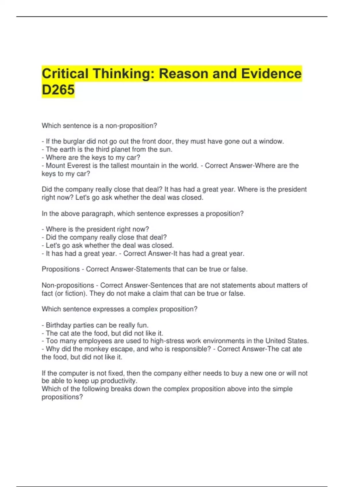 Complex propositions - Correct Answer-Complex propositions have internal logical