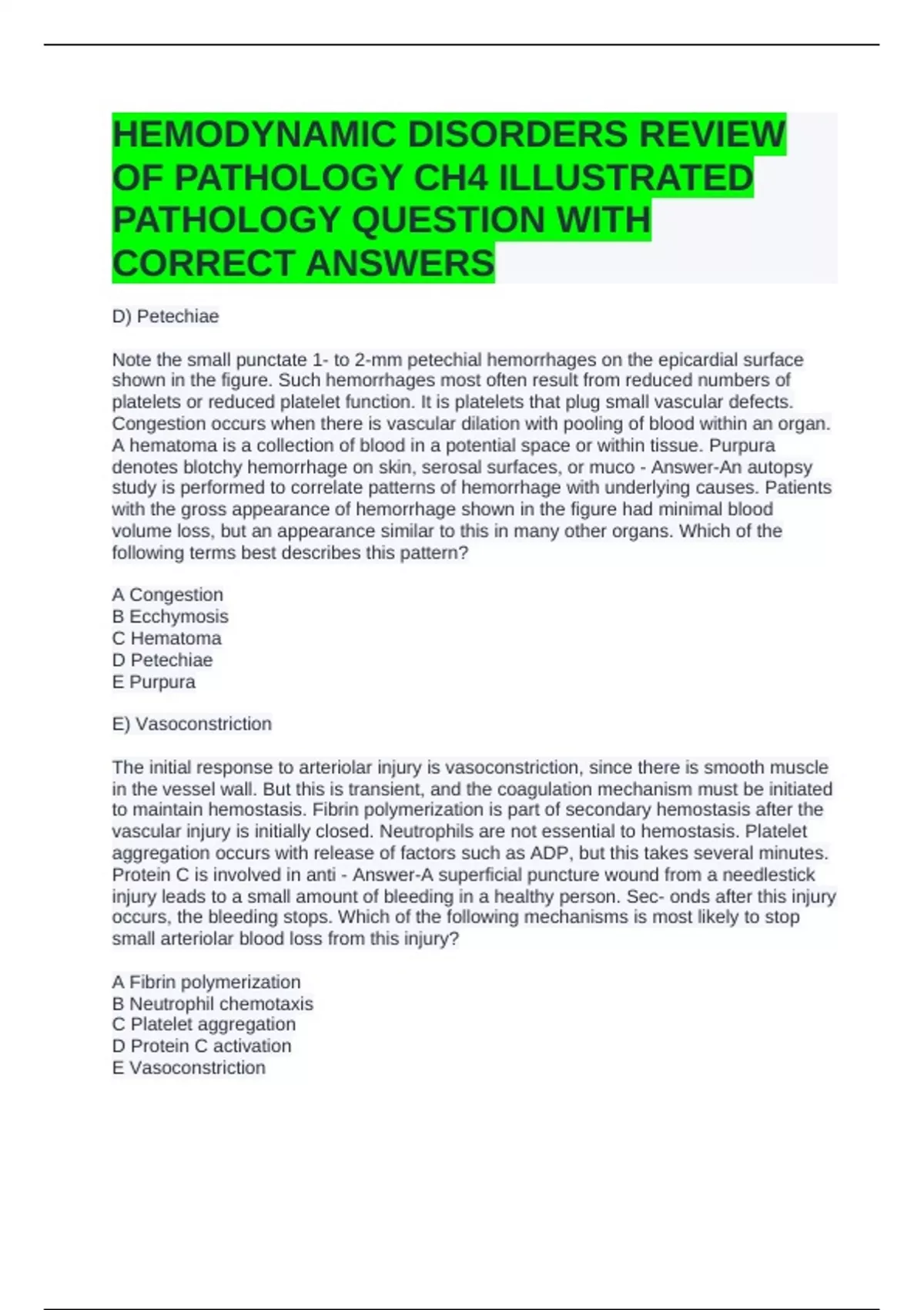 HEMODYNAMIC DISORDERS REVIEW OF PATHOLOGY CH4 ILLUSTRATED PATHOLOGY QUESTION WITH CORRECT ANSWERS