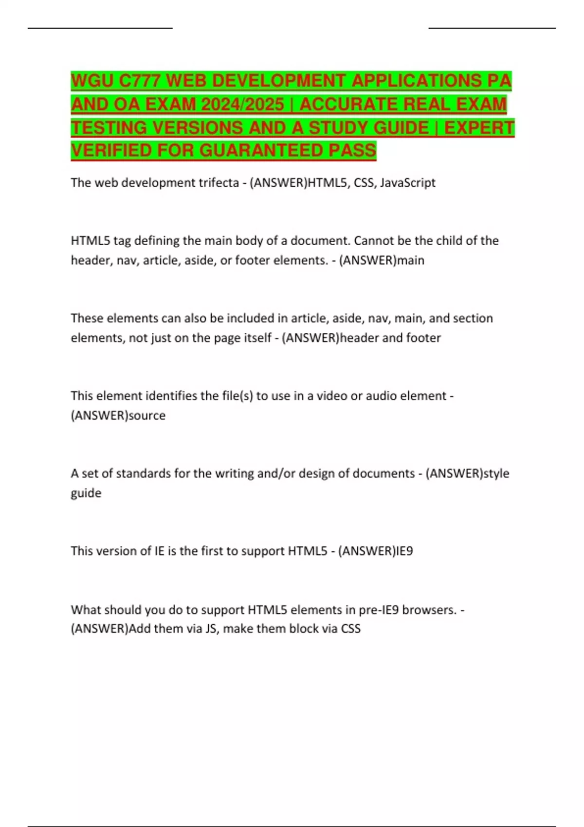 WGU C777 WEB DEVELOPMENT APPLICATIONS PA AND OA EXAM 2024/2025 | ACCURATE REAL EXAM TESTING VERSIONS AND A STUDY GUIDE | EXPERT VERIFIED FOR GUARANTEED PASS
