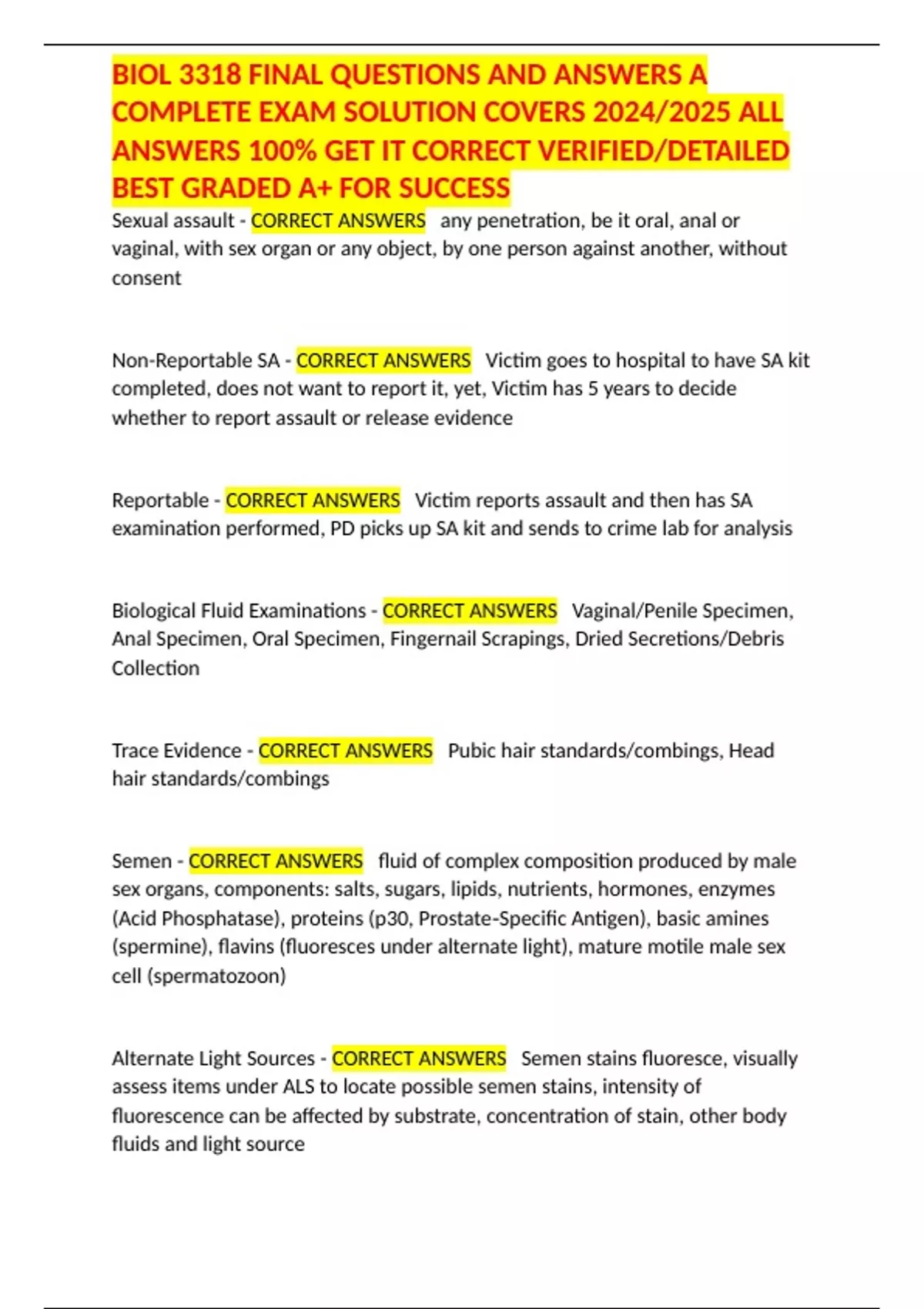 , BIOL 3318 FINAL QUESTIONS AND ANSWERS A