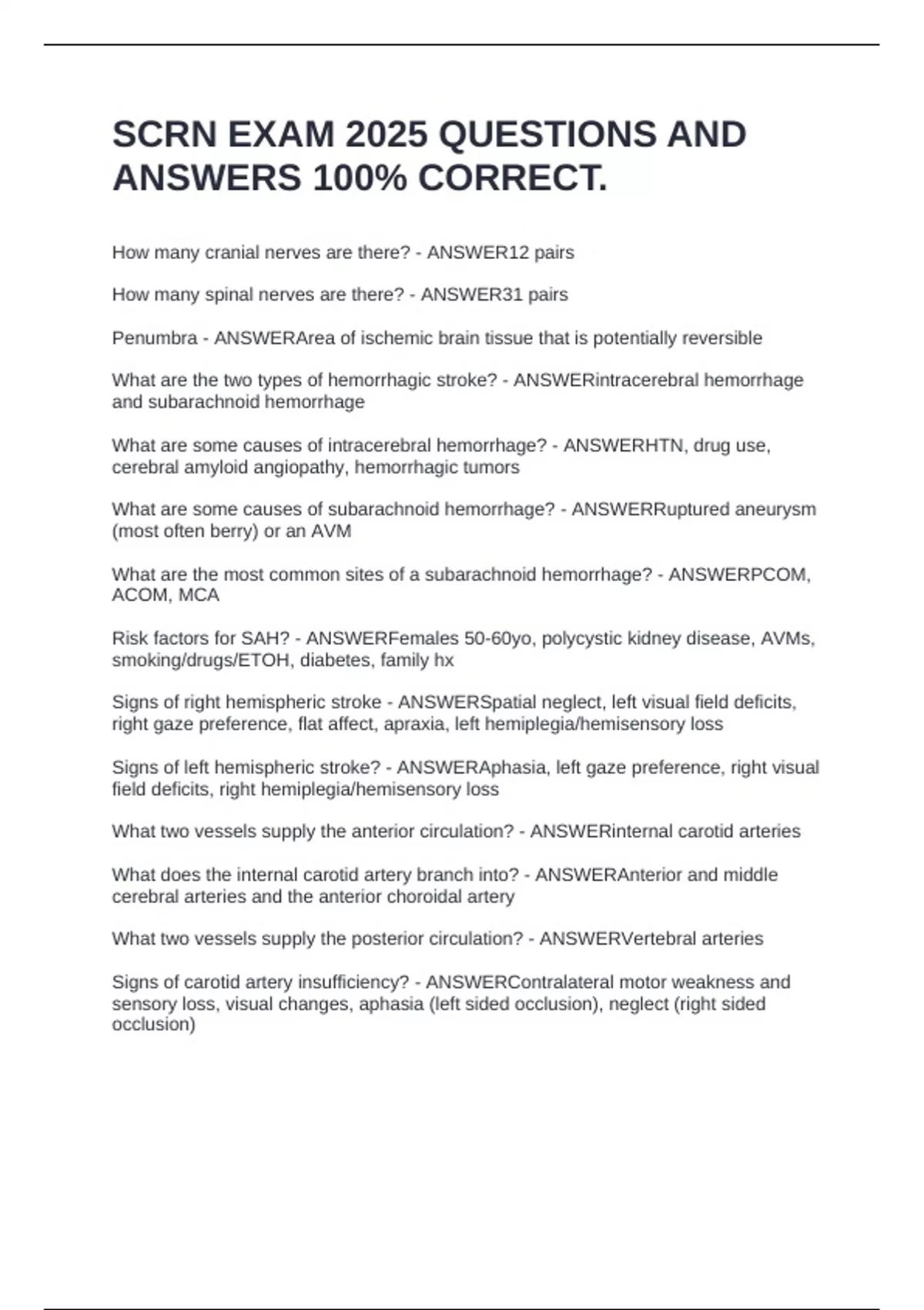What are some causes of subarachnoid hemorrhage? - ANSWERRuptured aneurysm