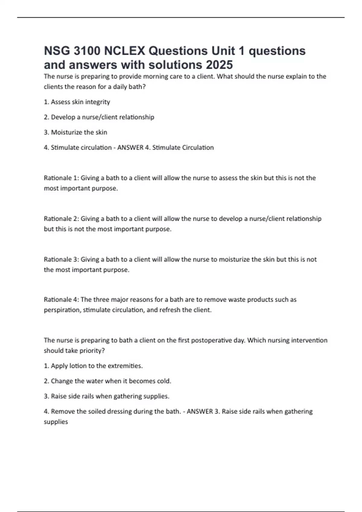 NSG 3100 NCLEX Questions Unit 1 questions and answers with solutions 2025.