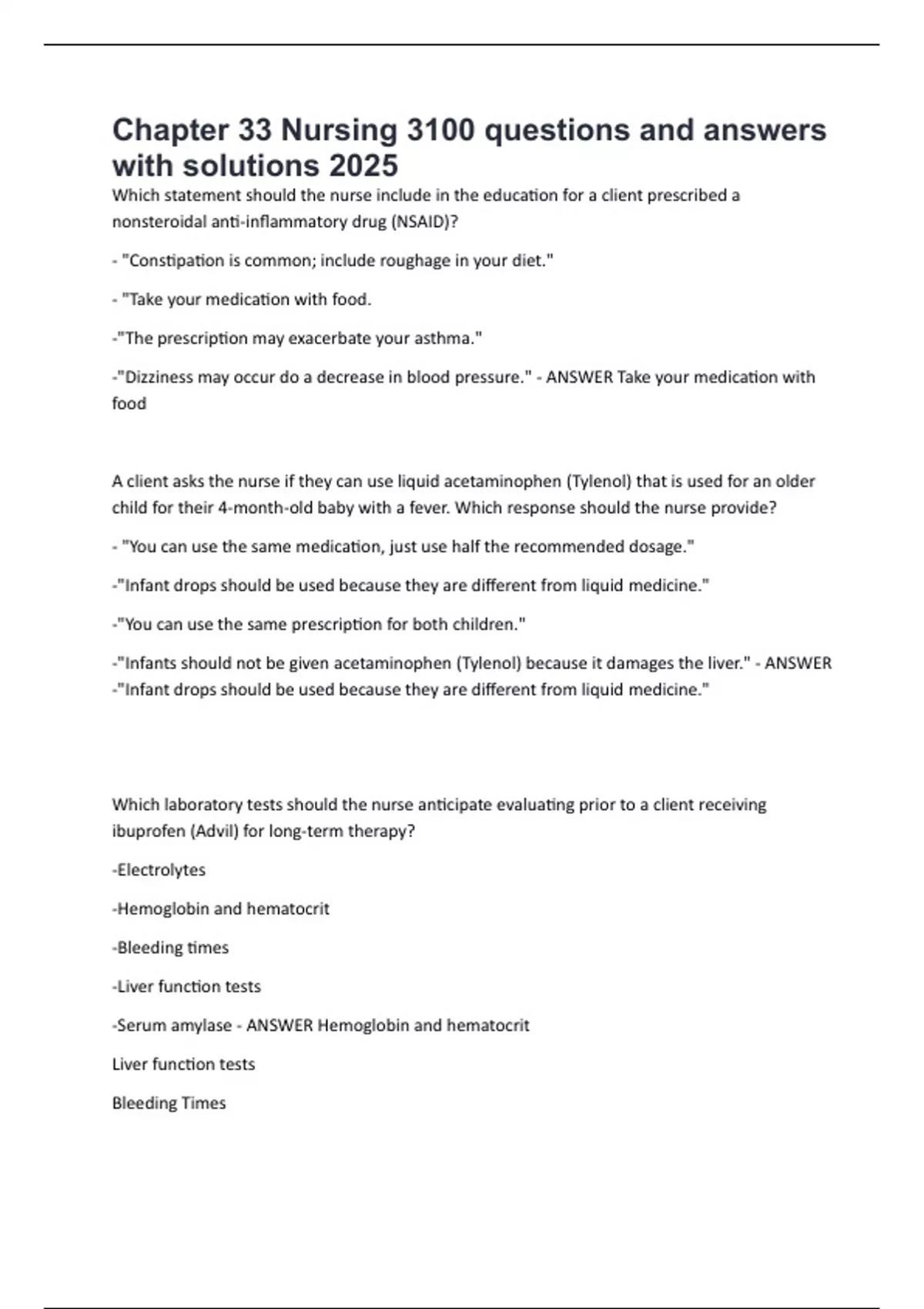 Chapter 33 Nursing 3100 questions and answers with solutions 2025