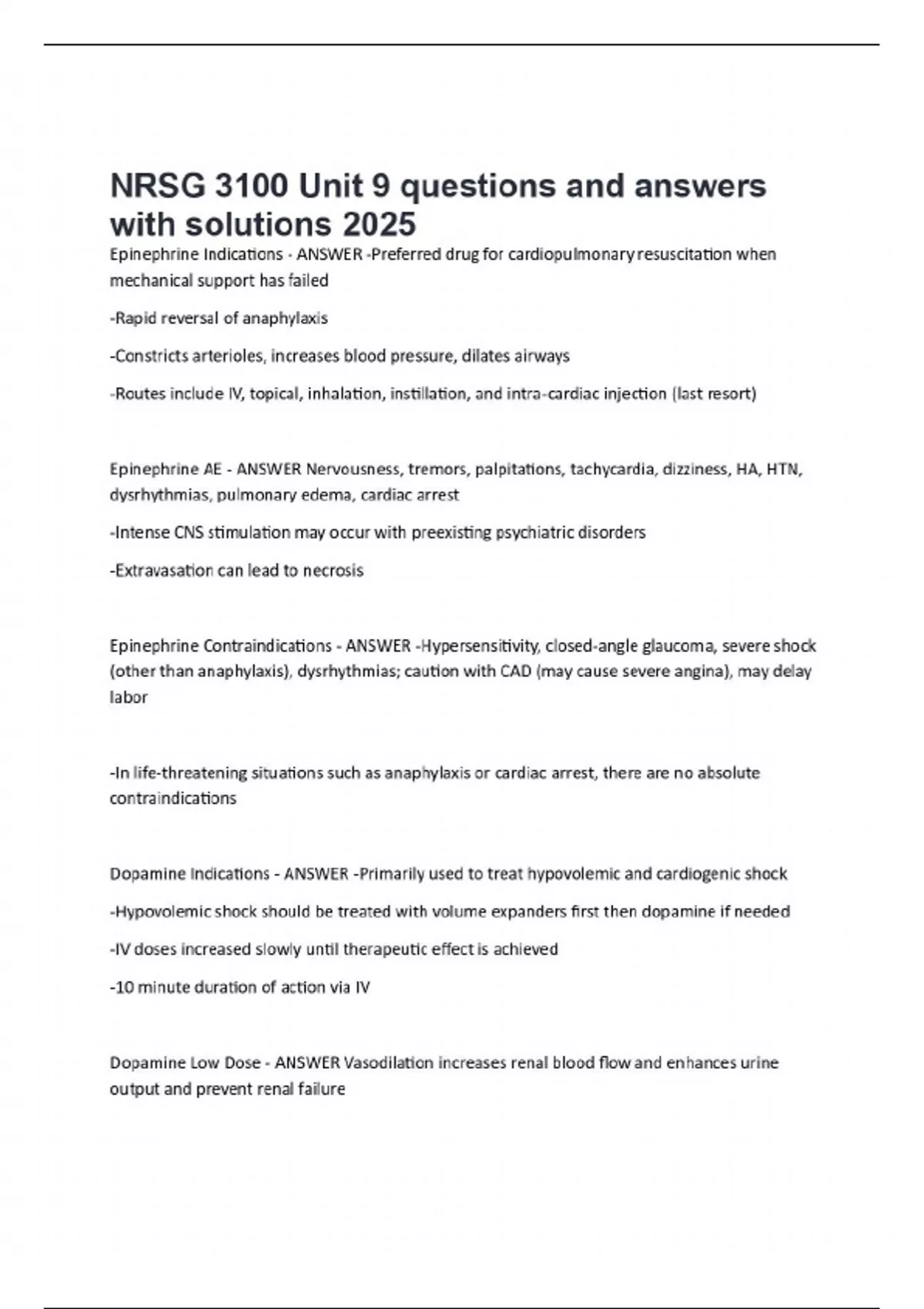 NRSG 3100 Unit 9 questions and answers with solutions 2025