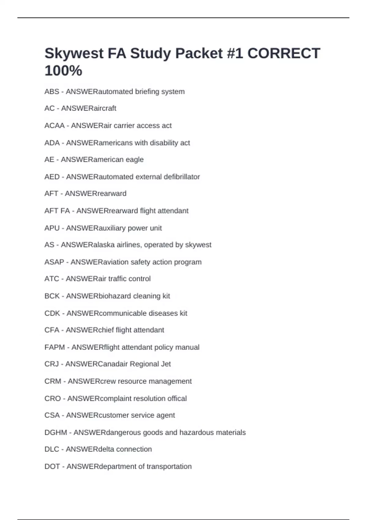 Skywest FA Study Packet #1 CORRECT 100%ABS - ANSWERautomated briefing system