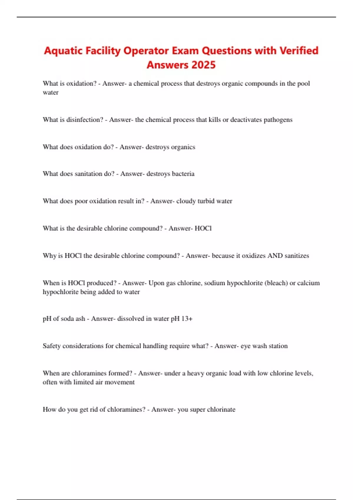 What is oxidation? - Answer- a chemical process that destroys organic compounds in the pool