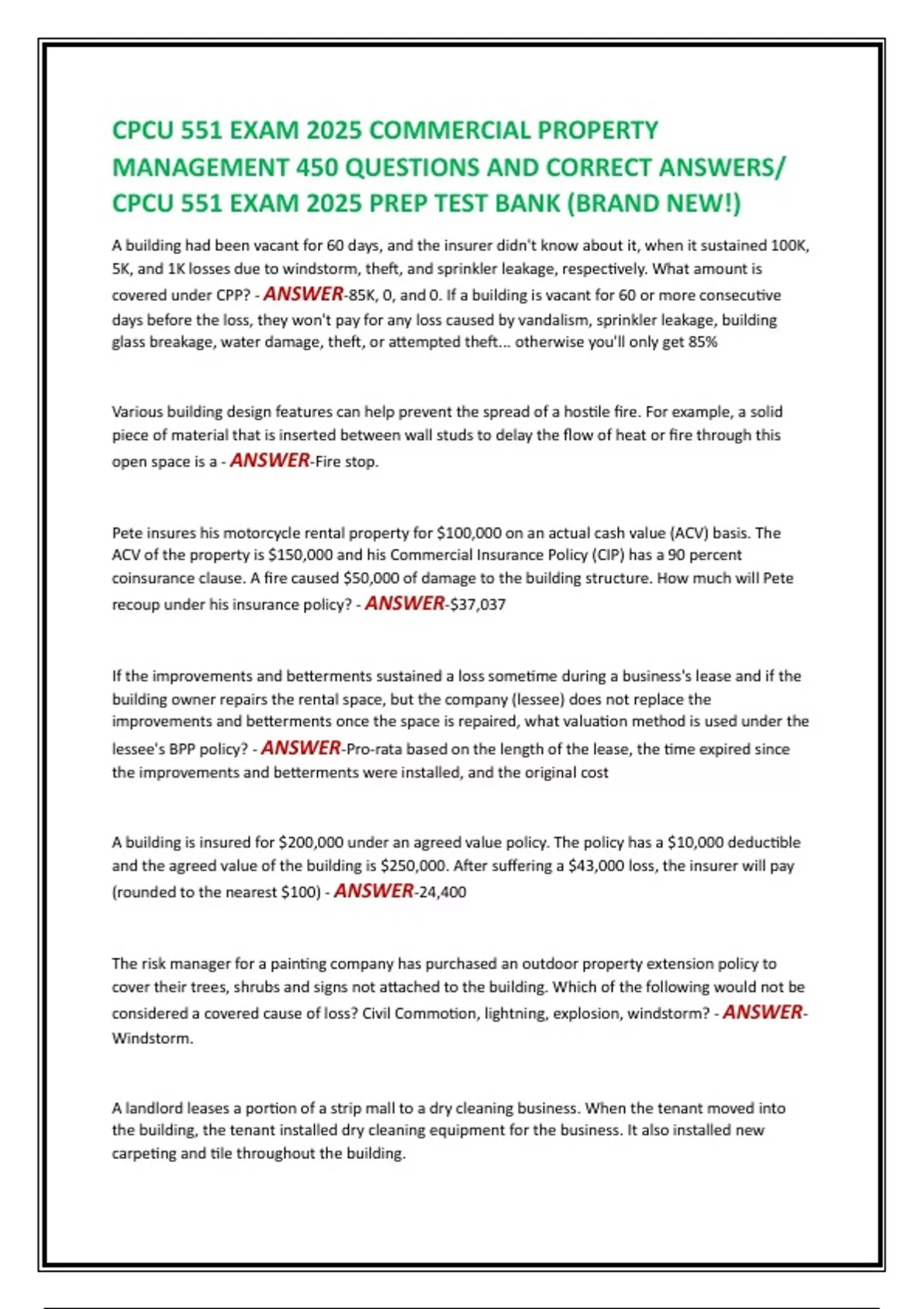 CPCU 551 EXAM 2025 PREP TEST BANK (BRAND NEW!)