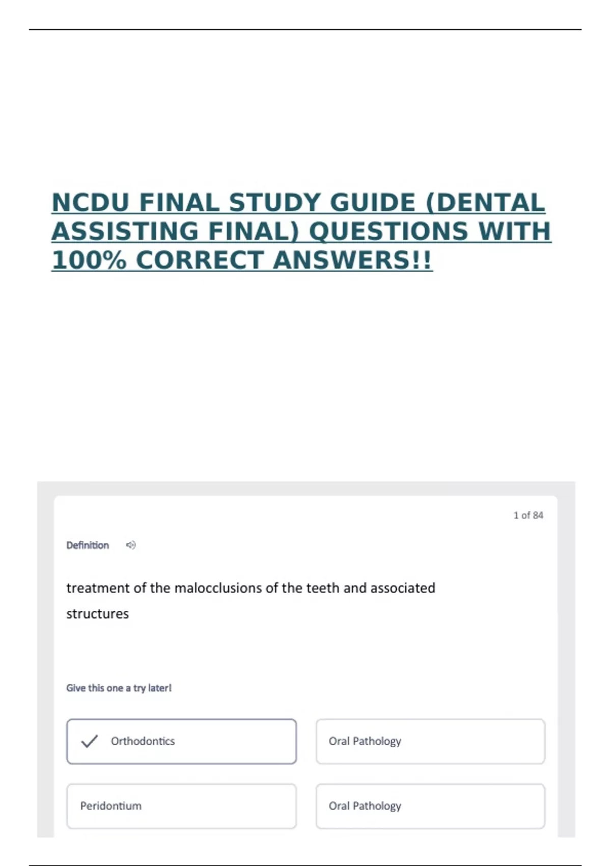 NCDU FINAL STUDY GUIDE (DENTAL
