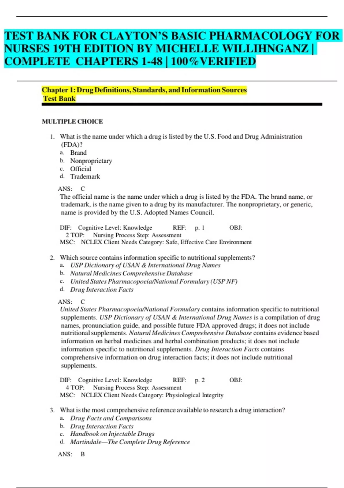 TEST BANK - Clayton’s Basic Pharmacology for Nurses 19th Edition Michelle Willihnganz, All Chapters 1 - 48, Newest Version TEST BANK - Clayton’s Basic Pharmacology for Nurses 19th Edition Michelle Willihnganz, All Chapters 1 - 48, Newest Version TEST BANK - Clayton’s Basic Pharmacology for Nurses 19th Edition Michelle Willihnganz, All Chapters 1 - 48, Newest Version TEST BANK - Clayton’s Basic Pharmacology for Nurses 19th Edition Michelle Willihnganz, All Chapters 1 - 48, Newest Version TEST BANK - Clayton’s Basic Pharmacology for Nurses 19th Edition Michelle Willihnganz, All Chapters 1 - 48, Newest Version TEST BANK - Clayton’s Basic Pharmacology for Nurses 19th Edition Michelle Willihnganz, All Chapters 1 - 48, Newest Version TEST BANK - Clayton’s Basic Pharmacology for Nurses 19th Edition Michelle Willihnganz, All Chapters 1 - 48, Newest Version TEST BANK - Clayton’s Basic Pharmacology for Nurses 19th Edition Michelle Willihnganz, All Chapters 1 - 48, Newest Version TEST BANK - Clayton’s Basic Pharmacology for Nurses 19th Edition Michelle Willihnganz, All Chapters 1 - 48, Newest Version TEST BANK - Clayton’s Basic Pharmacology for Nurses 19th Edition Michelle Willihnganz, All Chapters 1 - 48, Newest Version TEST BANK - Clayton’s Basic Pharmacology for Nurses 19th Edition Michelle Willihnganz, All Chapters 1 - 48, Newest Version TEST BANK - Clayton’s Basic Pharmacology for Nurses 19th Edition Michelle Willihnganz, All Chapters 1 - 48, Newest Version TEST BANK - Clayton’s Basic Pharmacology for Nurses 19th Edition Michelle Willihnganz, All Chapters 1 - 48, Newest Version