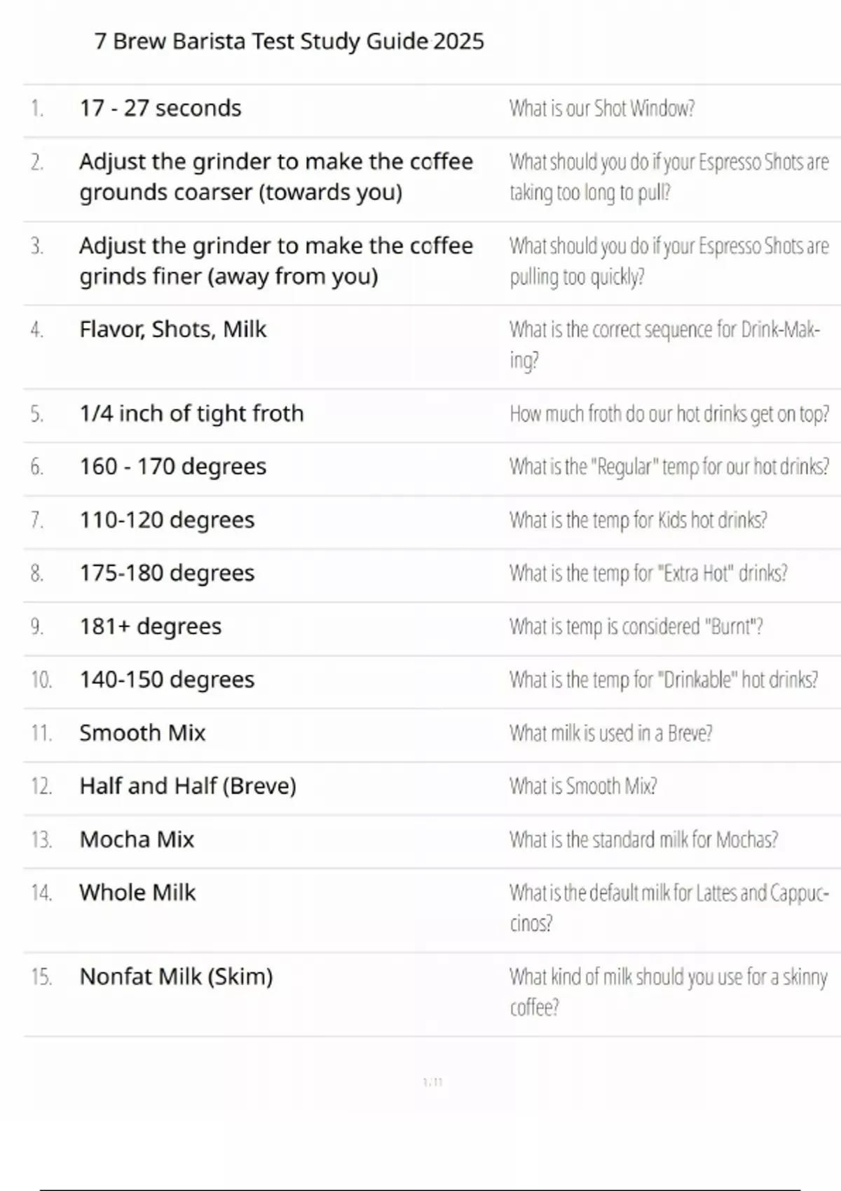 7 Brew Barista Test Study Guide 2025| score 100% NOW