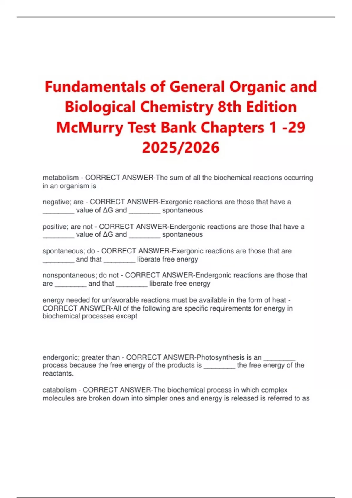McMurry Test Bank Chapters 1 -29