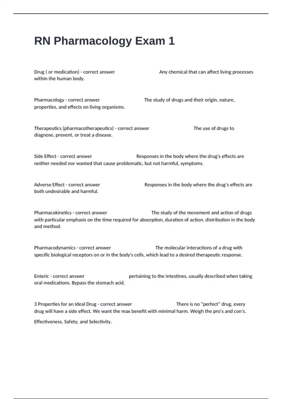 3 Properties for an Ideal Drug - correct answer There is no "perfect" drug, every