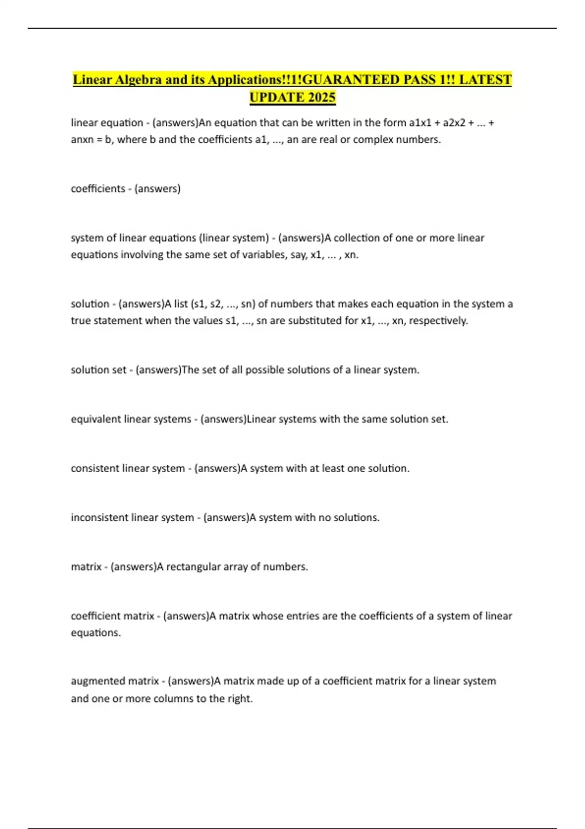 Linear Algebra and its Applications!!1!GUARANTEED PASS 1!! LATEST UPDATE 2025