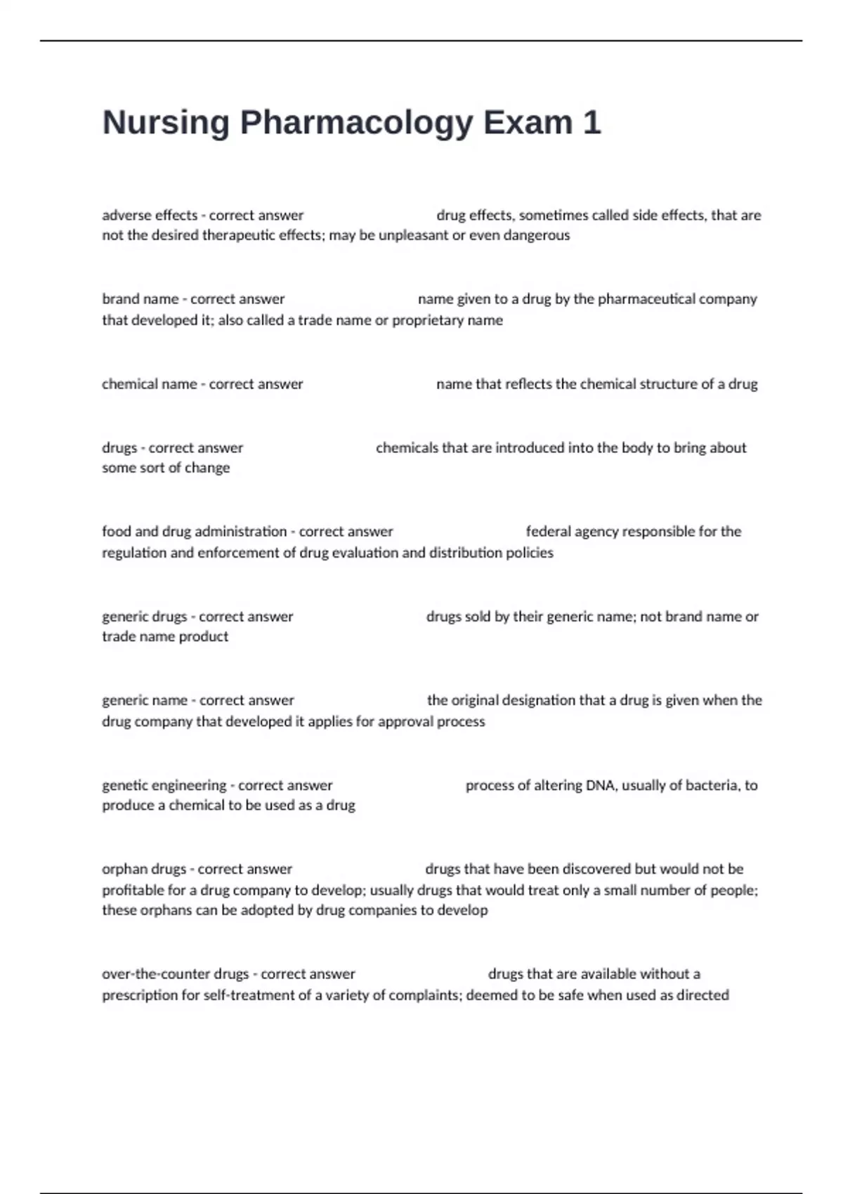 adverse effects - correct answer drug effects, sometimes called side effects, that are