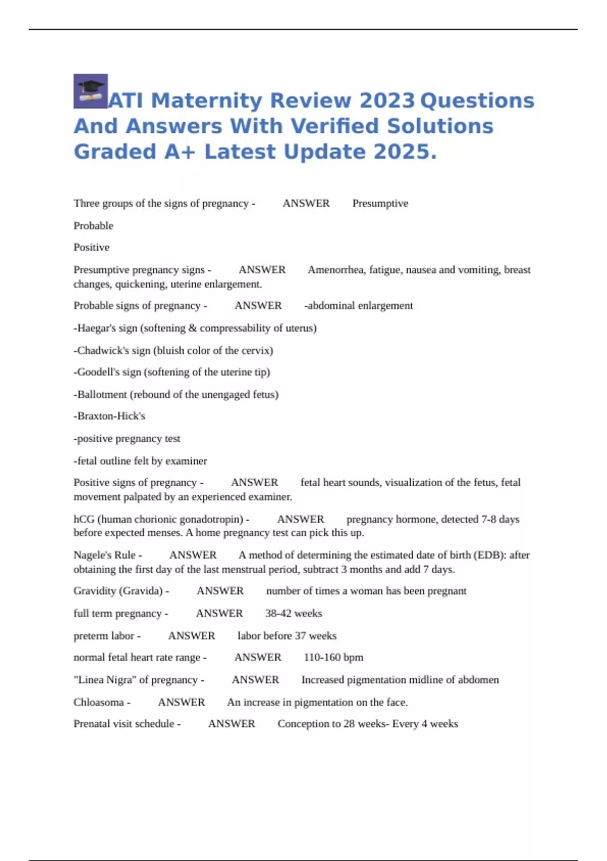 ATI Maternity Review 2023 Questions And Answers With Verified Solutions Graded A+ Latest Update 2025.
