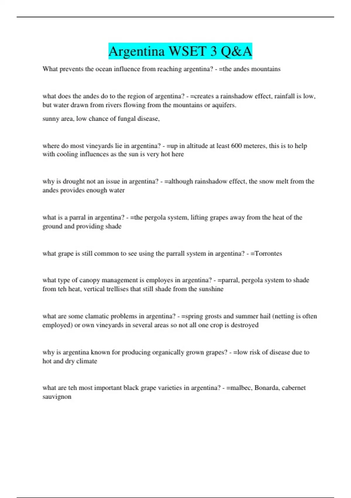 Argentina WSET 3 Q&A