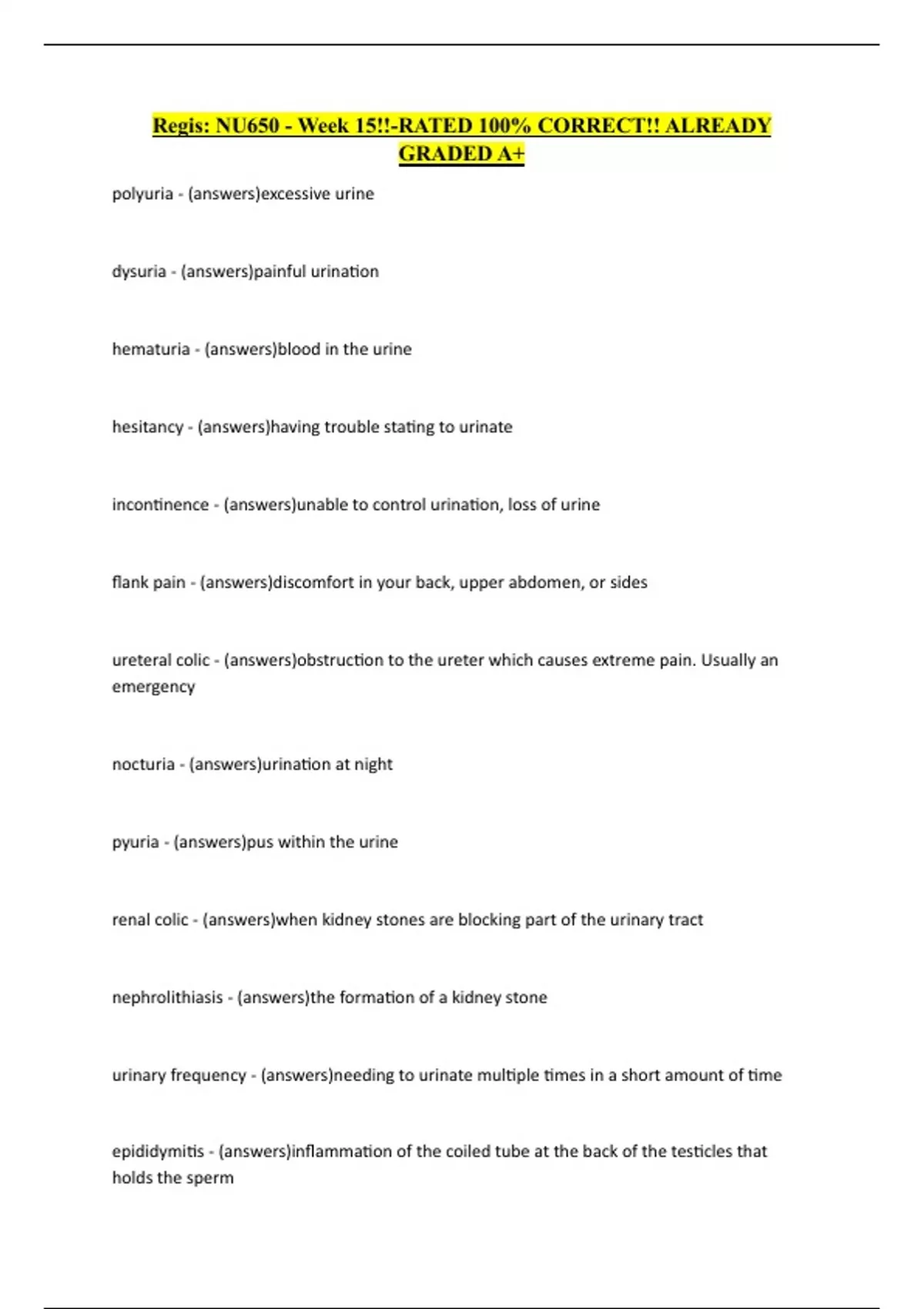 dysuria - (answers)painful urination