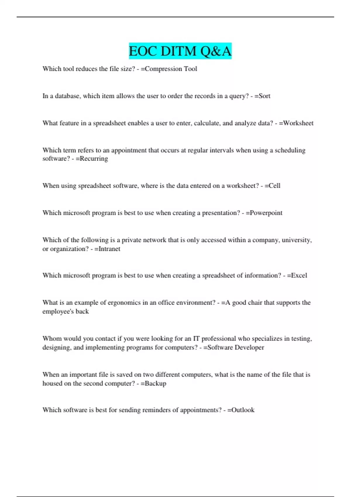 EOC DITM Q&A