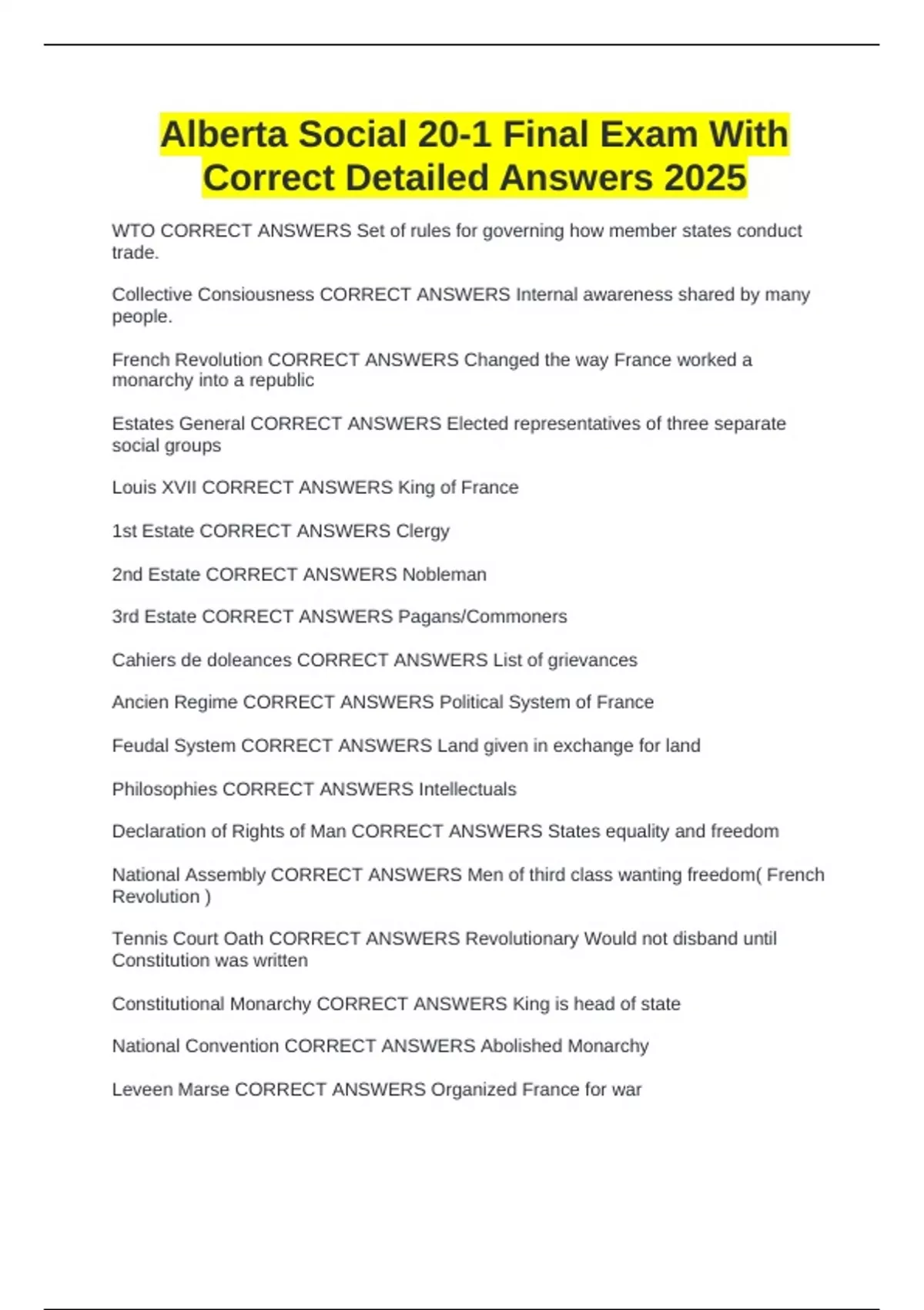 Cahiers de doleances CORRECT ANSWERS List of grievances