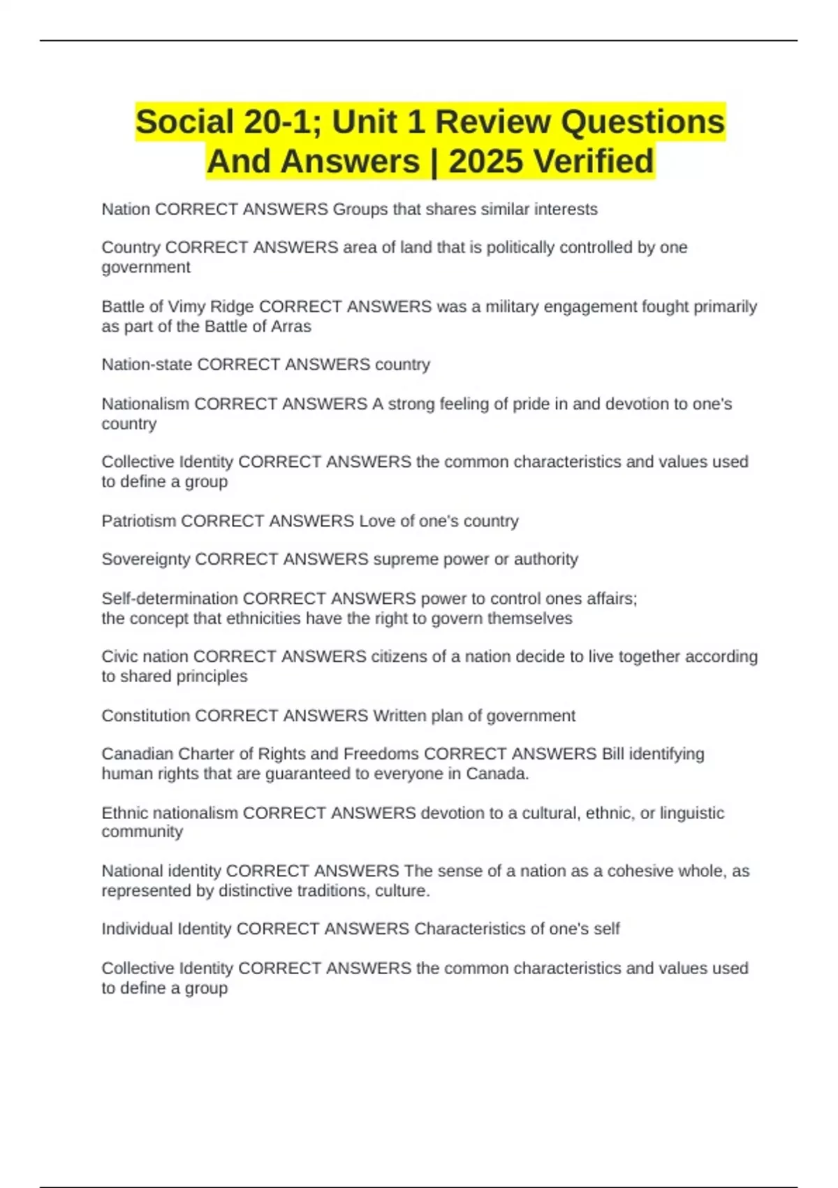 Social 20-1; Unit 1 Review Questions And Answers | 2025 Verified