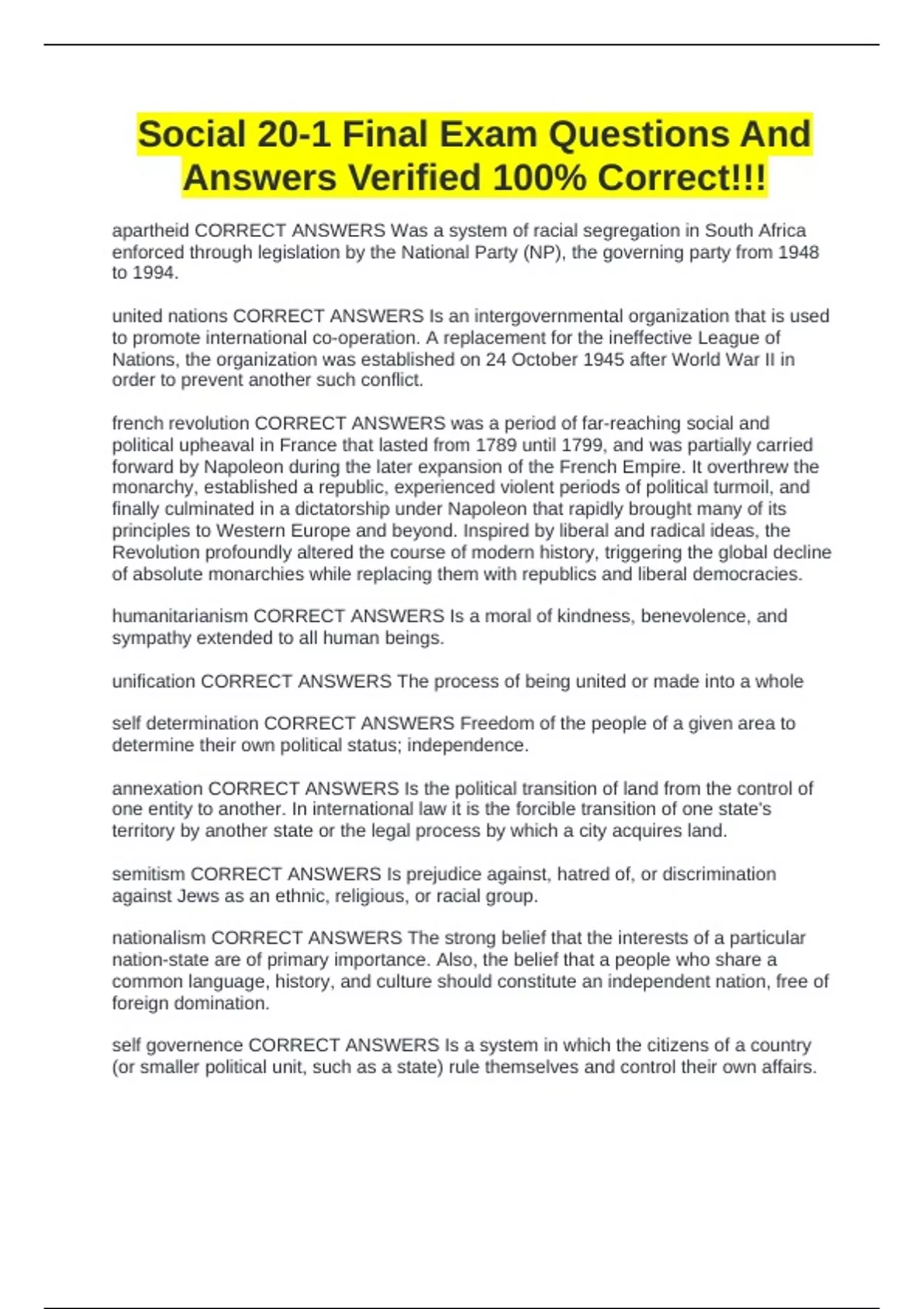 Social 20-1 Final Exam Questions And Answers Verified 100% Correct!!!