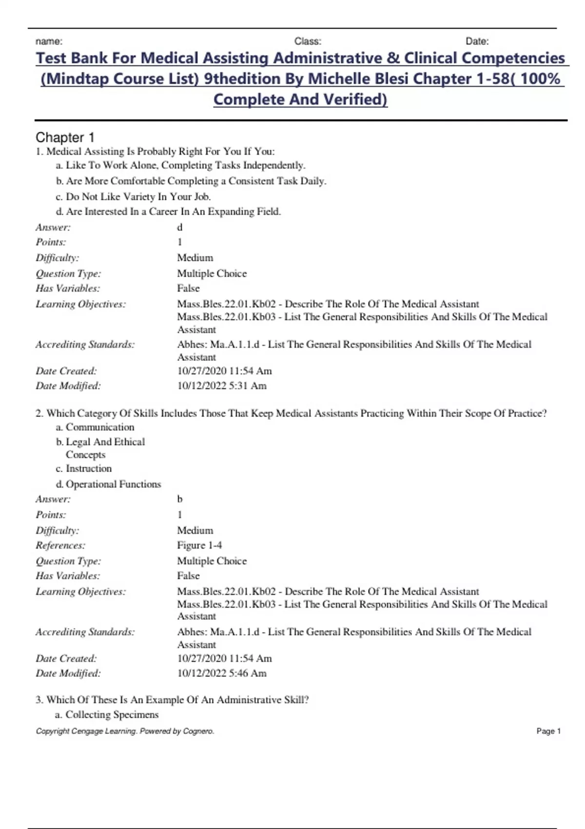 Test Bank For Medical Assisting Administrative & Clinical Competencies