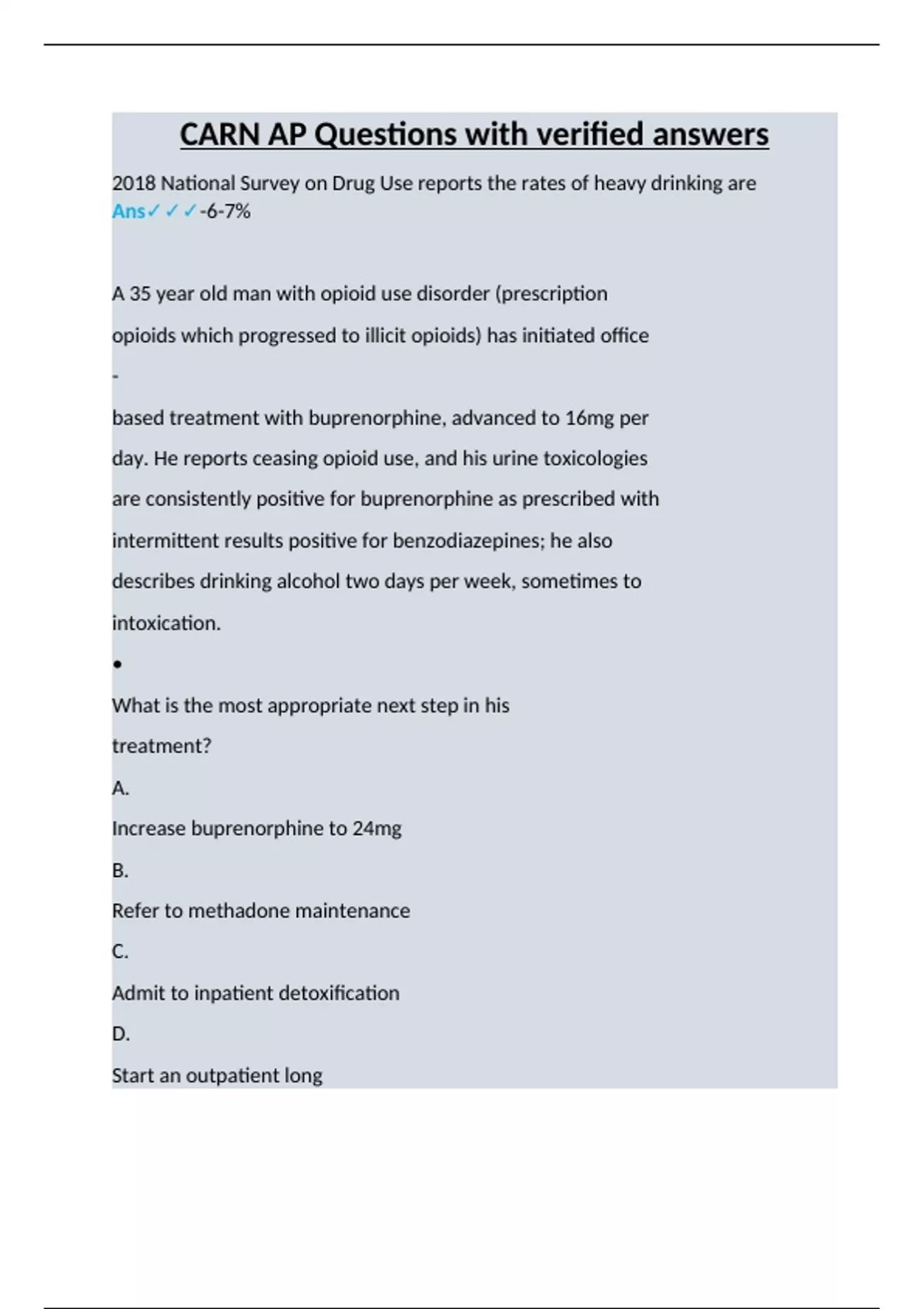 A 35 year old man with opioid use disorder (prescription