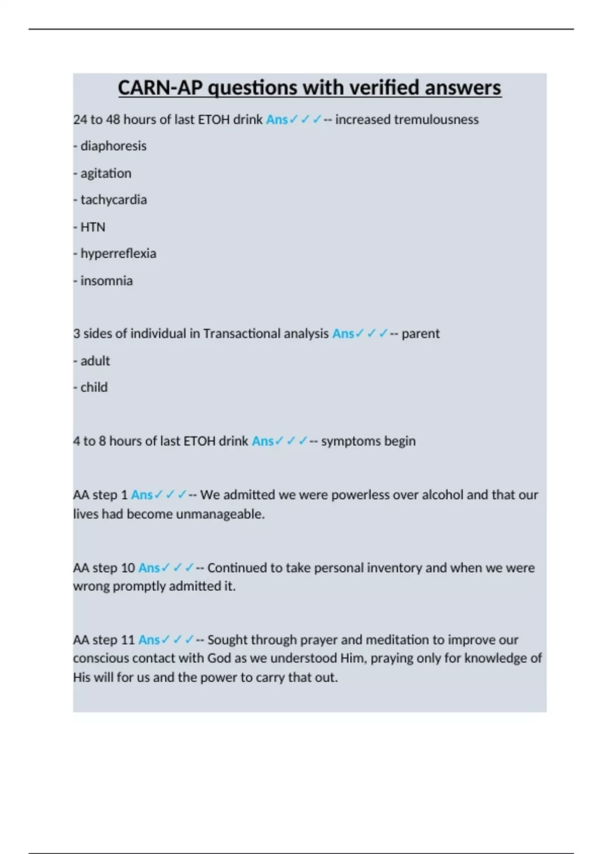 AA step 1 Ans✓✓✓-- We admitted we were powerless over alcohol and that our