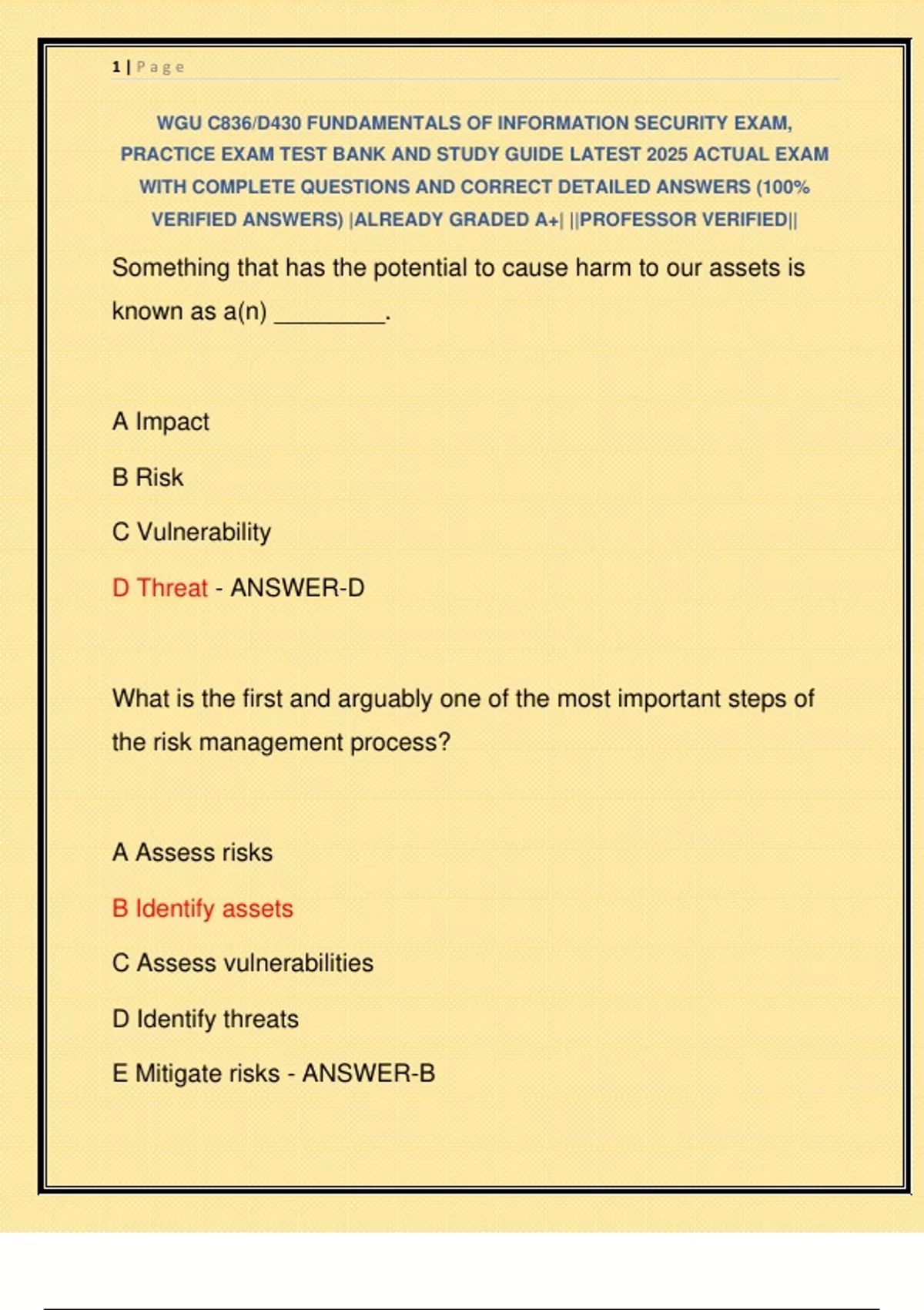 WGU C836/D430 FUNDAMENTALS OF INFORMATION SECURITY EXAM,