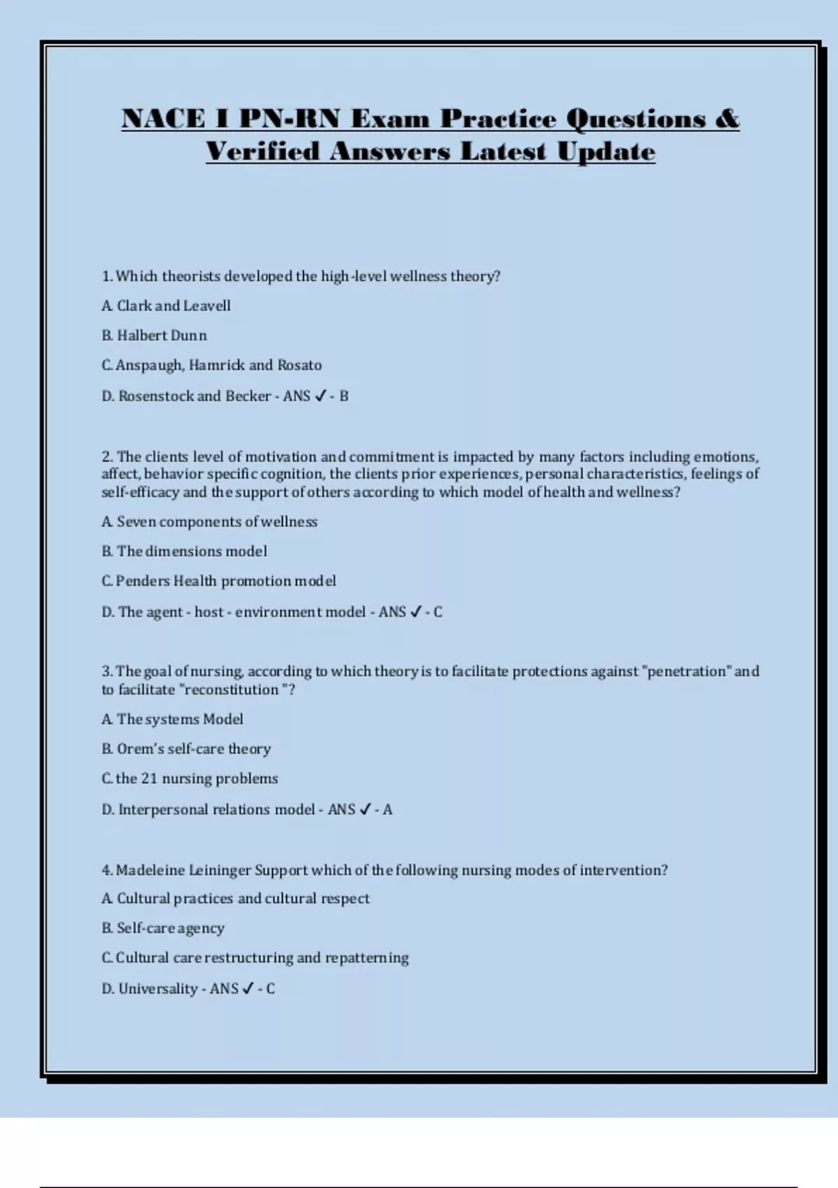 D. Nursing - ANS ✔ - A
