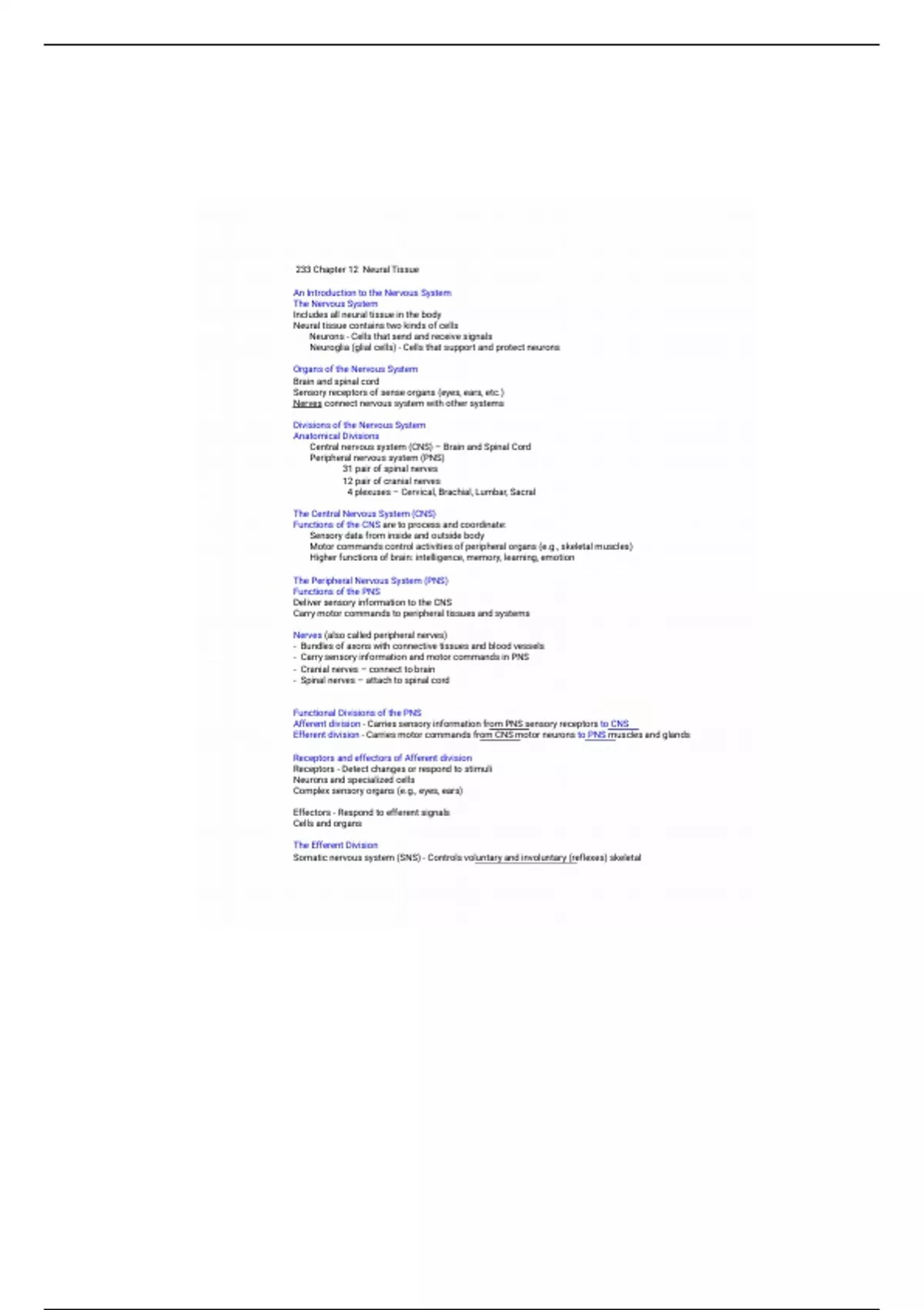 The Peripheral Nervous System (PNS)