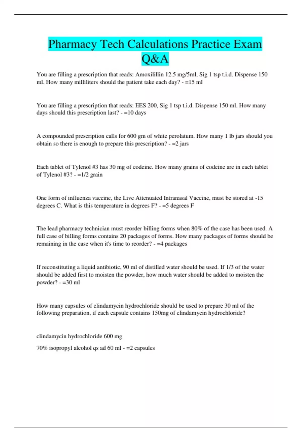Pharmacy Tech Calculations Practice Exam
