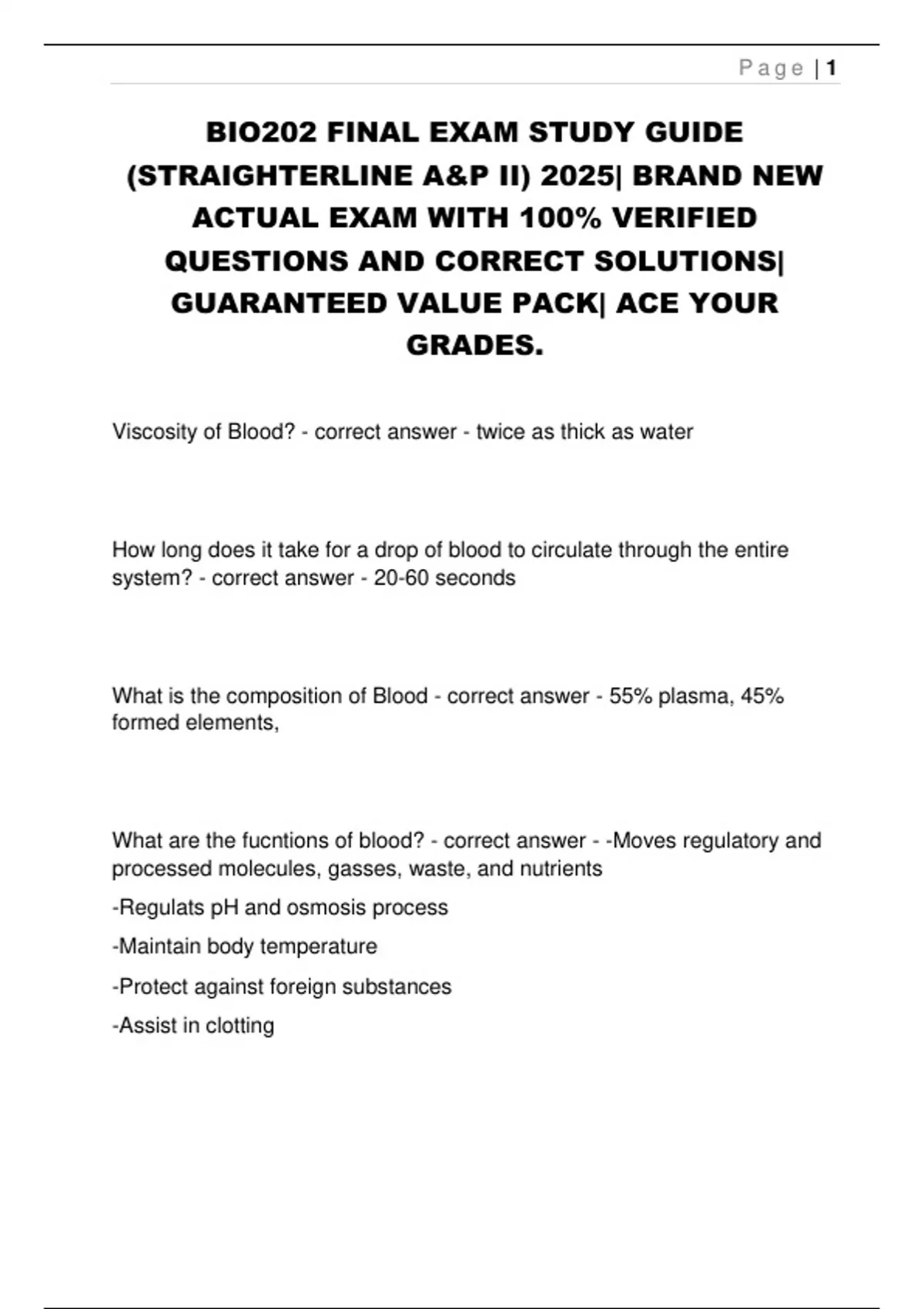 BIO202 FINAL EXAM STUDY GUIDE (STRAIGHTERLINE A&P II) 2025| BRAND NEW ACTUAL EXAM WITH 100% VERIFIED QUESTIONS AND CORRECT SOLUTIONS| GUARANTEED VALUE PACK| ACE YOUR GRADES.
